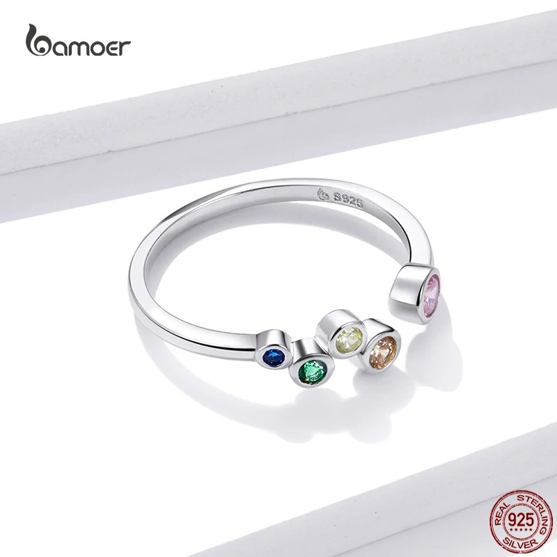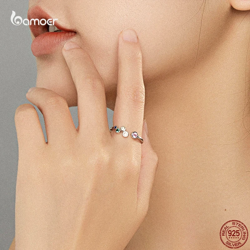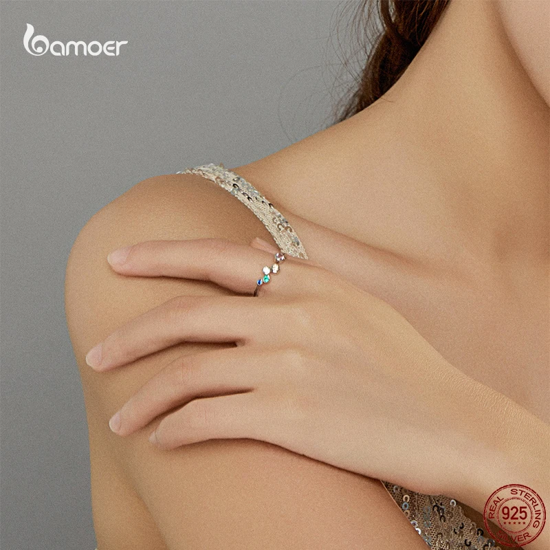 Bamoer стерлингового серебра 925 перстень с яркими открытые, кольца на палец для женщин Бесплатная Размеры корейский стиль ювелирных изделий GAR149