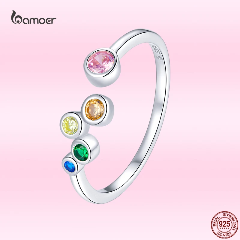 Кольца BISAER реальные 925 пробы серебряные с красочными пузырьками...