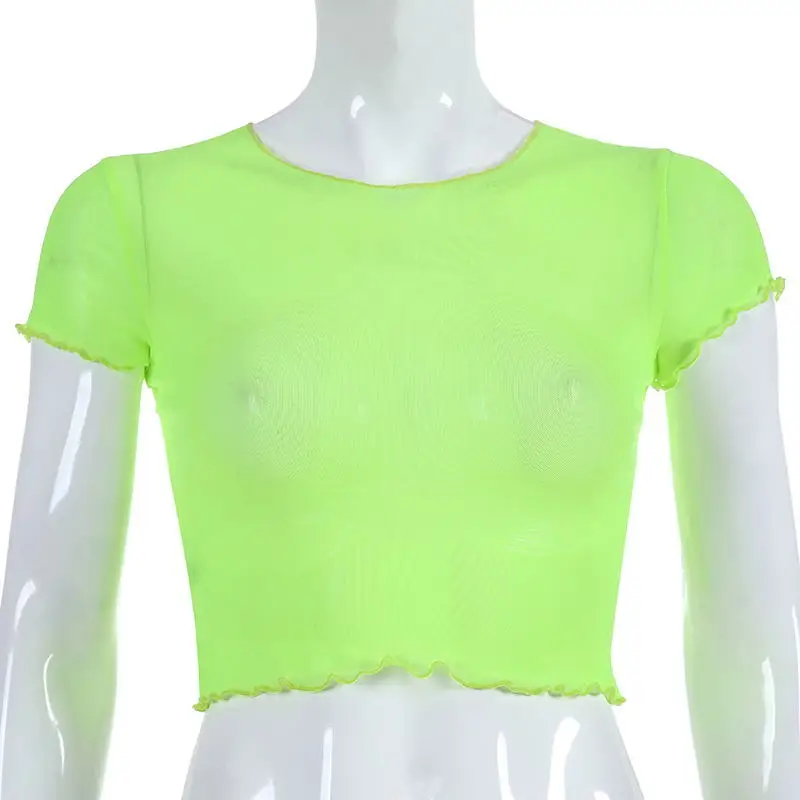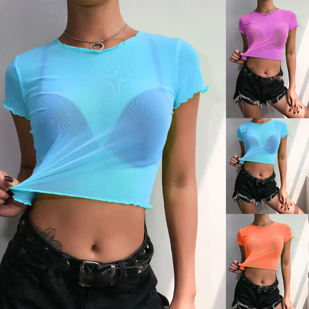 Meihuida 2020 Женская модная сетчатая Прозрачная майка, укороченный топ, Повседневная футболка, S-L Однотонная футболка