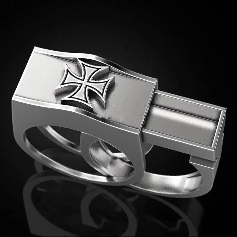 Milangirl Модные мужские ювелирные изделия крест секретный отсек Cinerary медальон шкатулка кольцо в форме гроба хип-хоп кольца