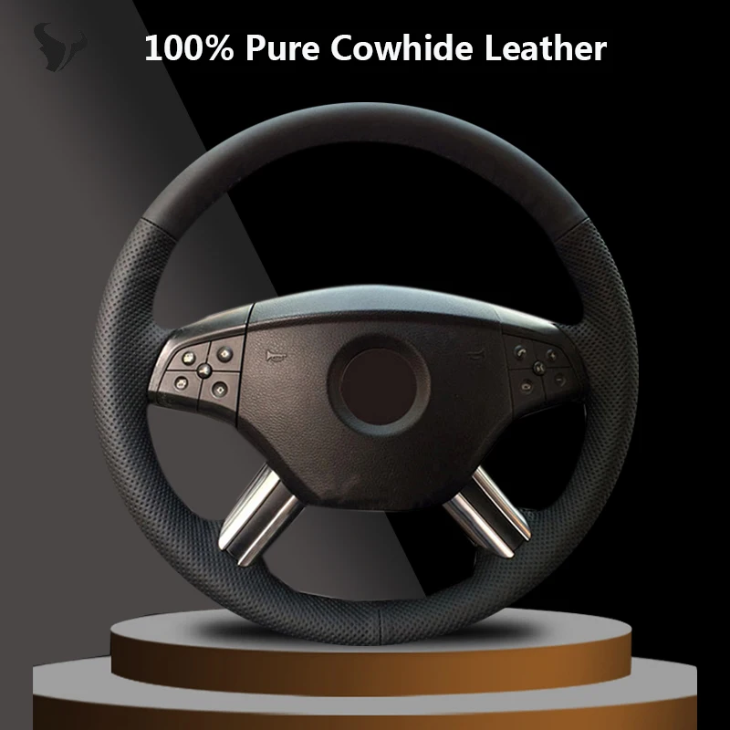 Сшитый вручную черный чехол на руль из натуральной кожи для Mercedes-Benz W164 M-Class ML350 ML500 2005 2006 X164 GL-Class GL