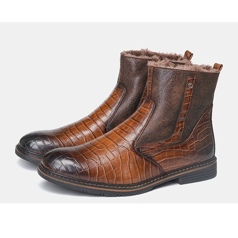 Мужские ботинки из натуральной кожи, зимние теплые ботинки на меху, с плюшевой подкладкой, ботинки с острым носком, мужские деловые ботинки