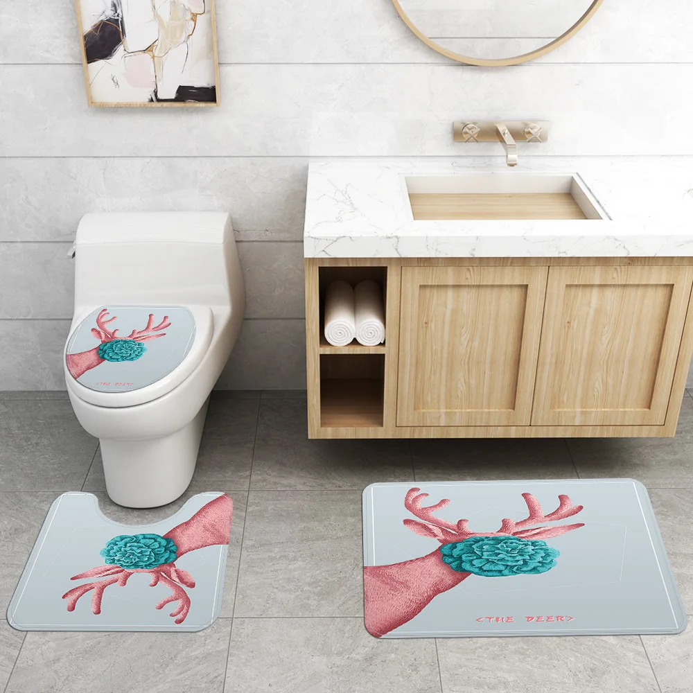 Коврик для ванной комнаты с животным принтом, коврик для ванной и занавеска для душа, набор из микрофибры, чехол для унитаза, ванная комната, противоскользящий ковер, костюм
