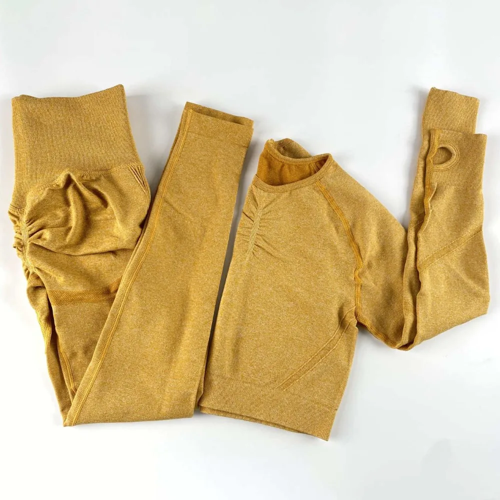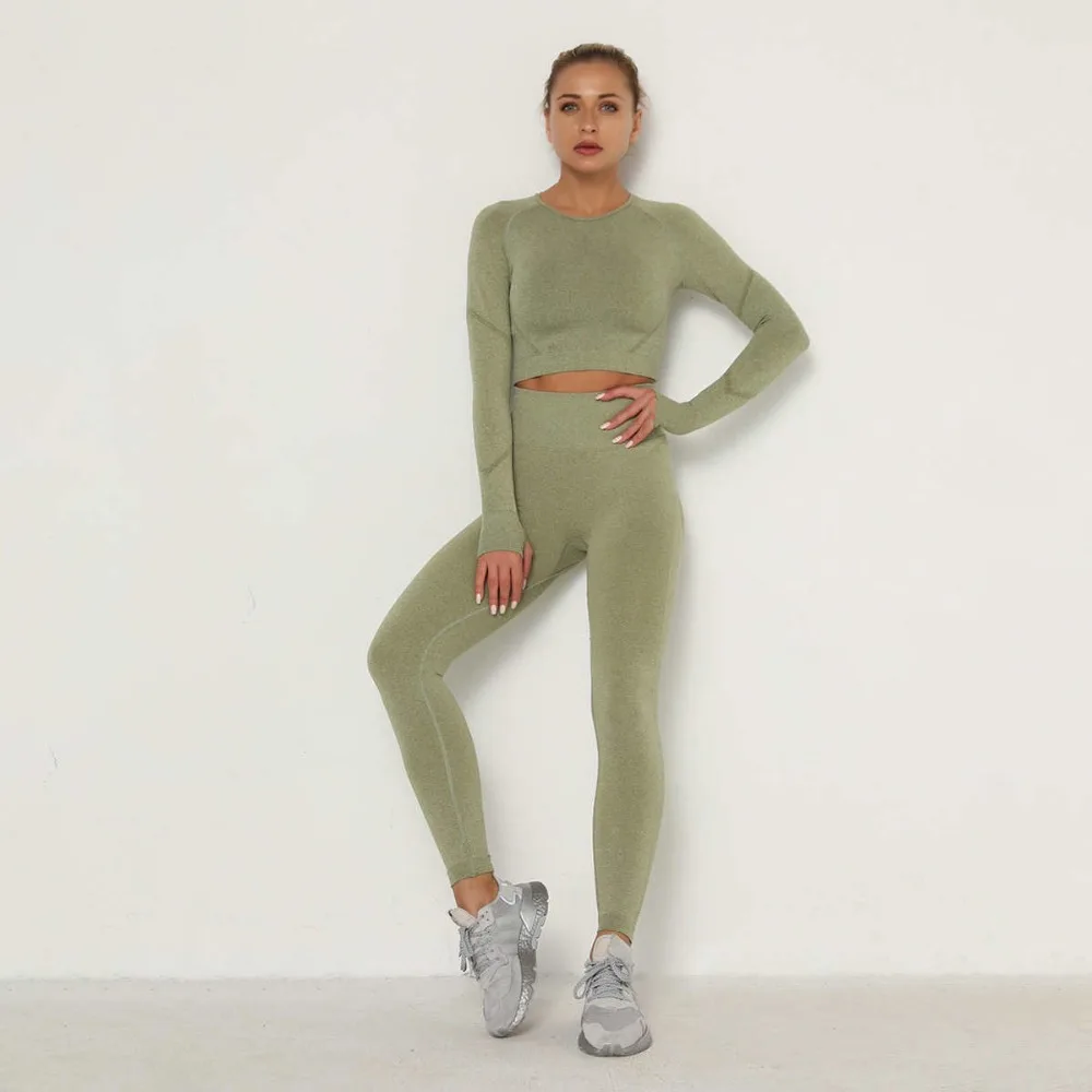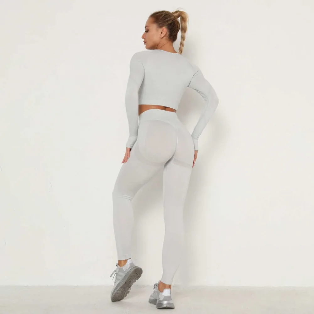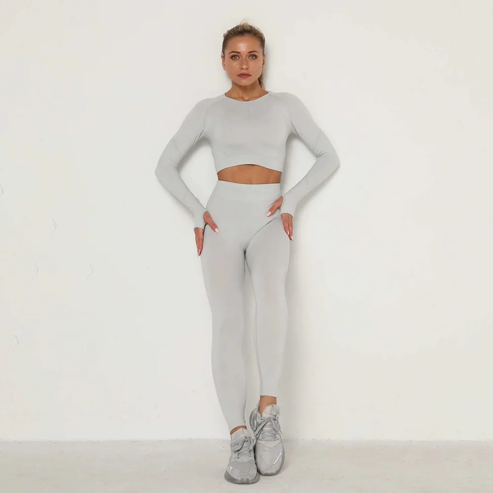 Комплект спортивный женский бесшовный, Топ с длинным рукавом и легг...