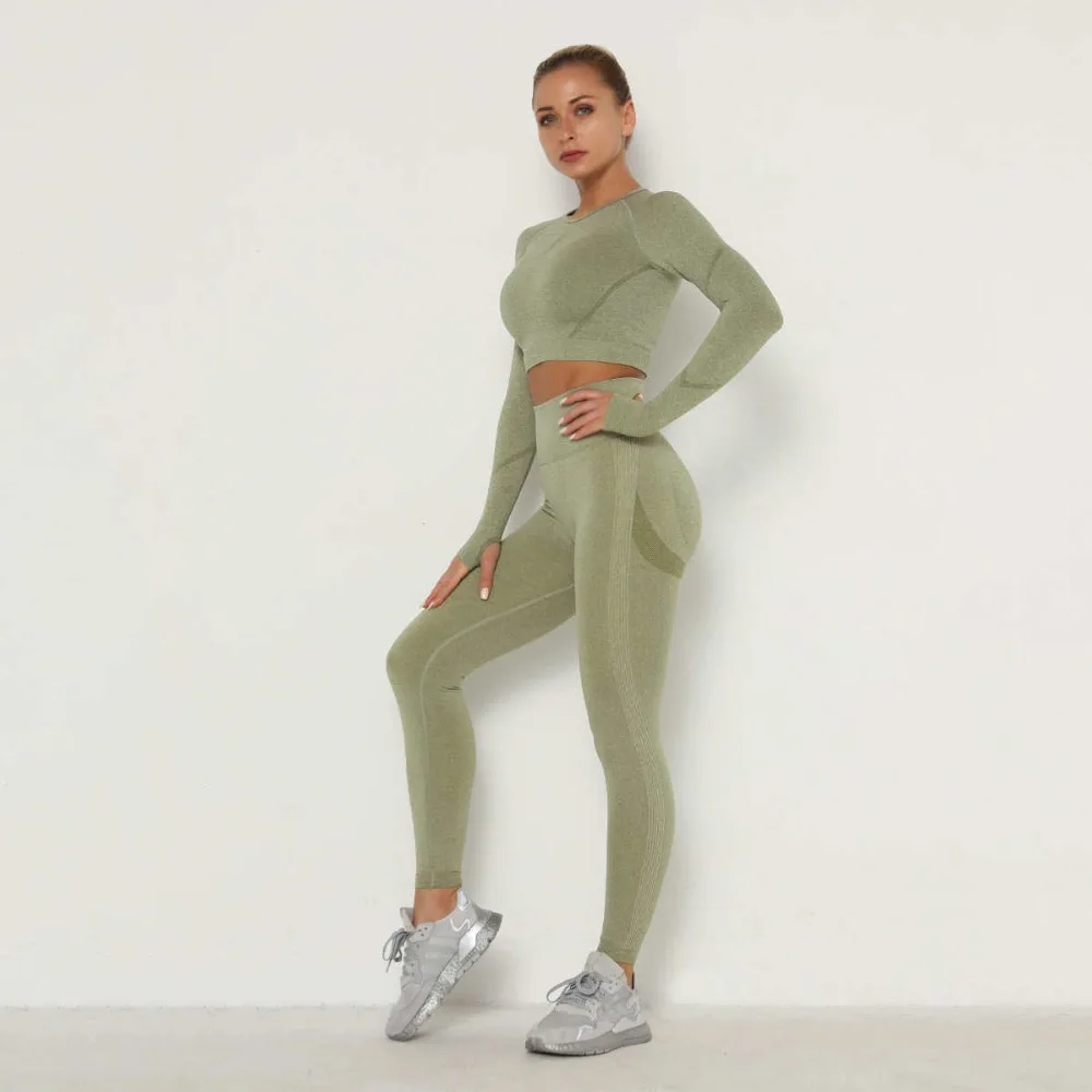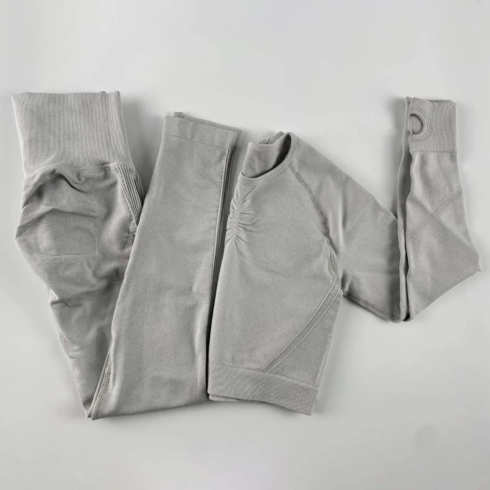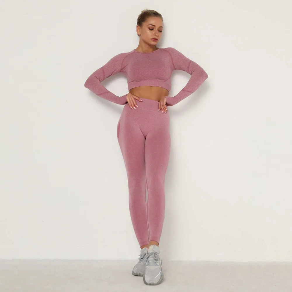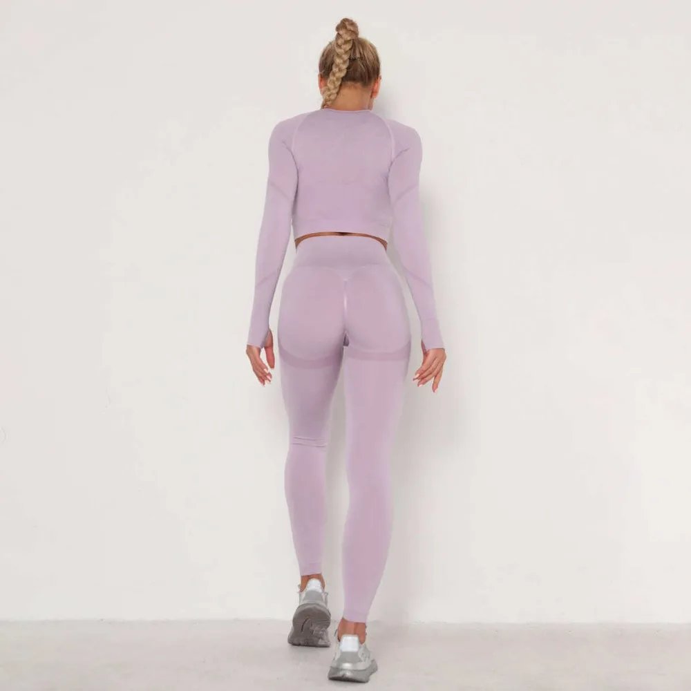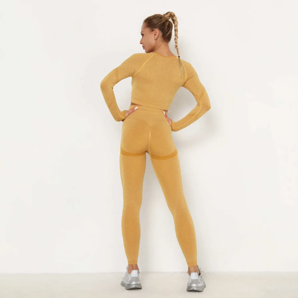 Комплект спортивный женский бесшовный, Топ с длинным рукавом и легг...