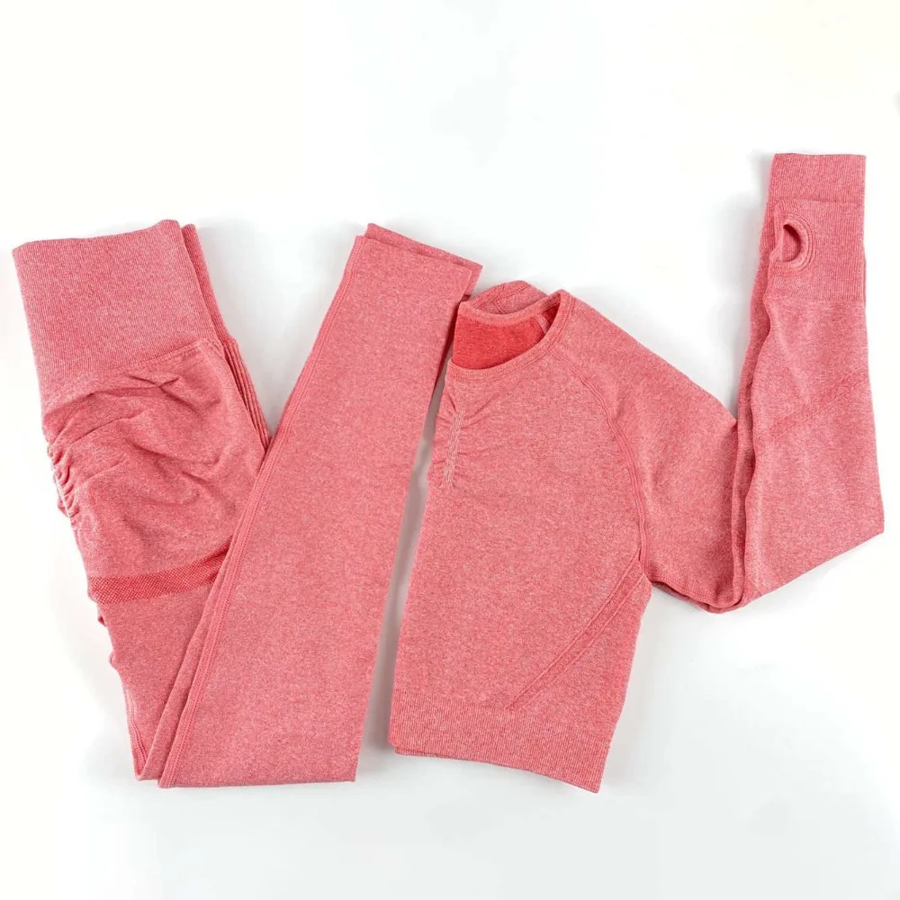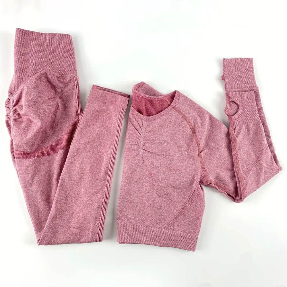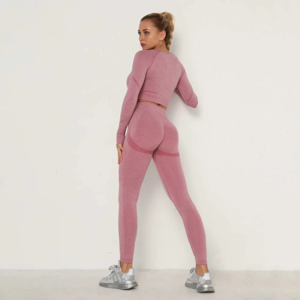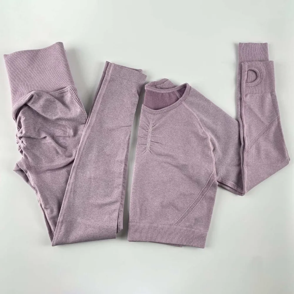 Комплект спортивный женский бесшовный, Топ с длинным рукавом и легг...