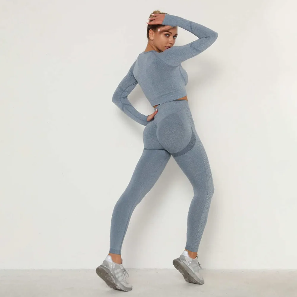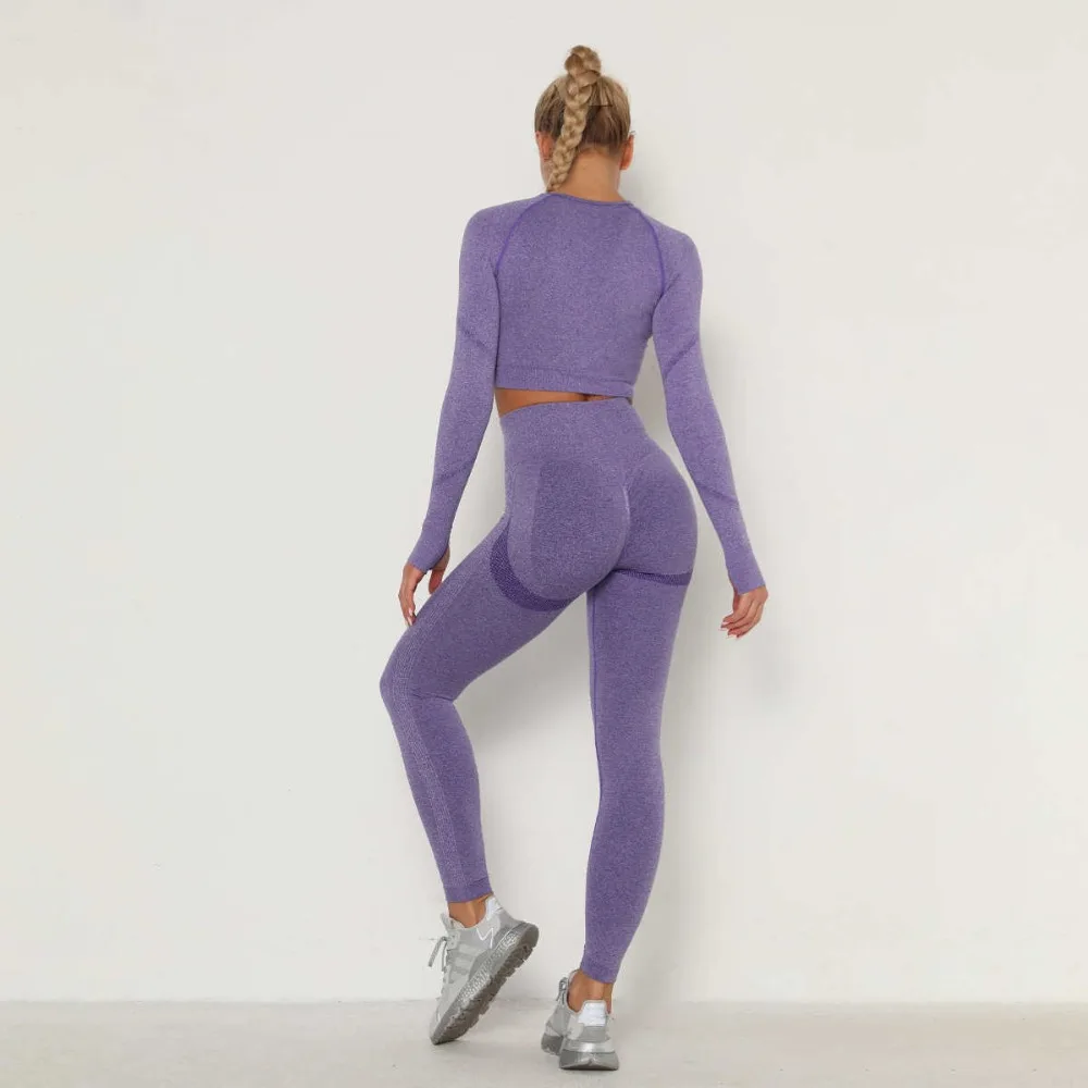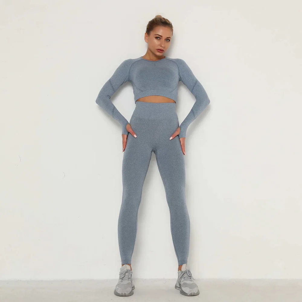 Комплект спортивный женский бесшовный, с высокой талией и длинным р...