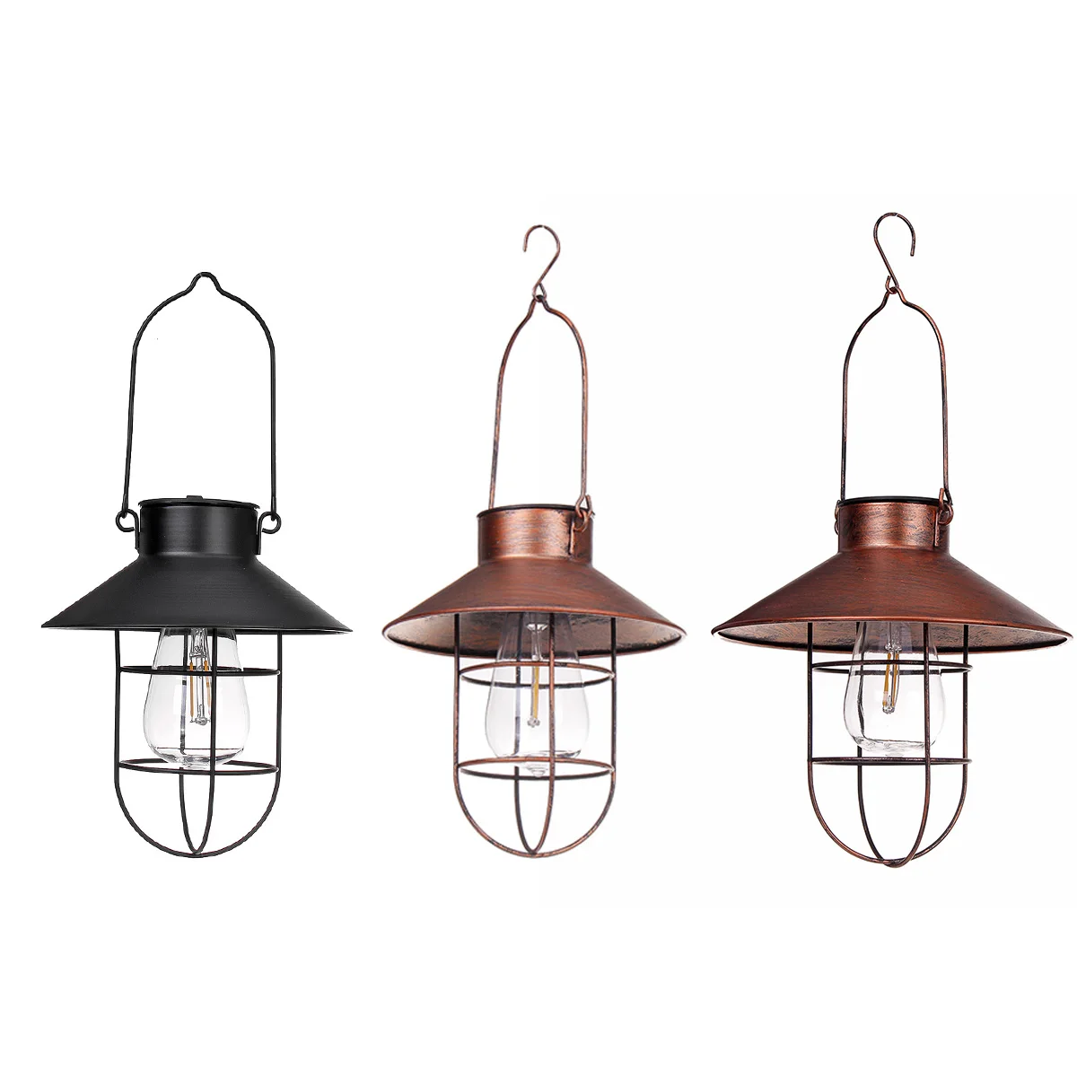 Уличный подвесной светильник на солнечной батарее, водонепроницаемый винтажный металлический садовый светильник с вольфрамовыми лампочками, декоративное освещение для внутреннего дворика, заднего двора