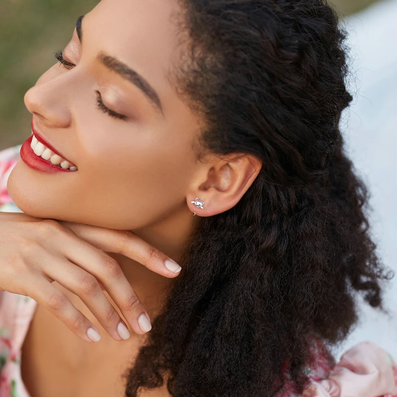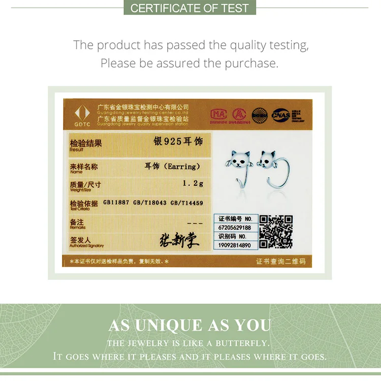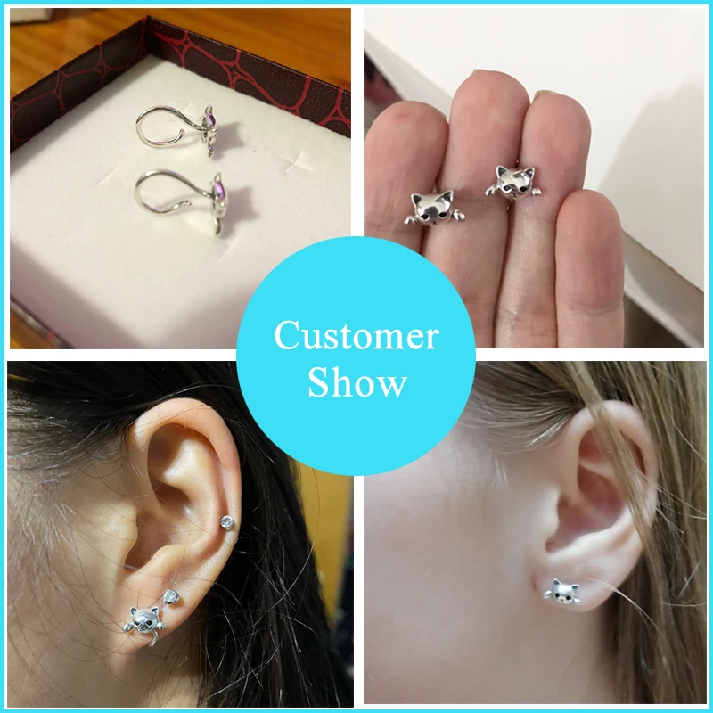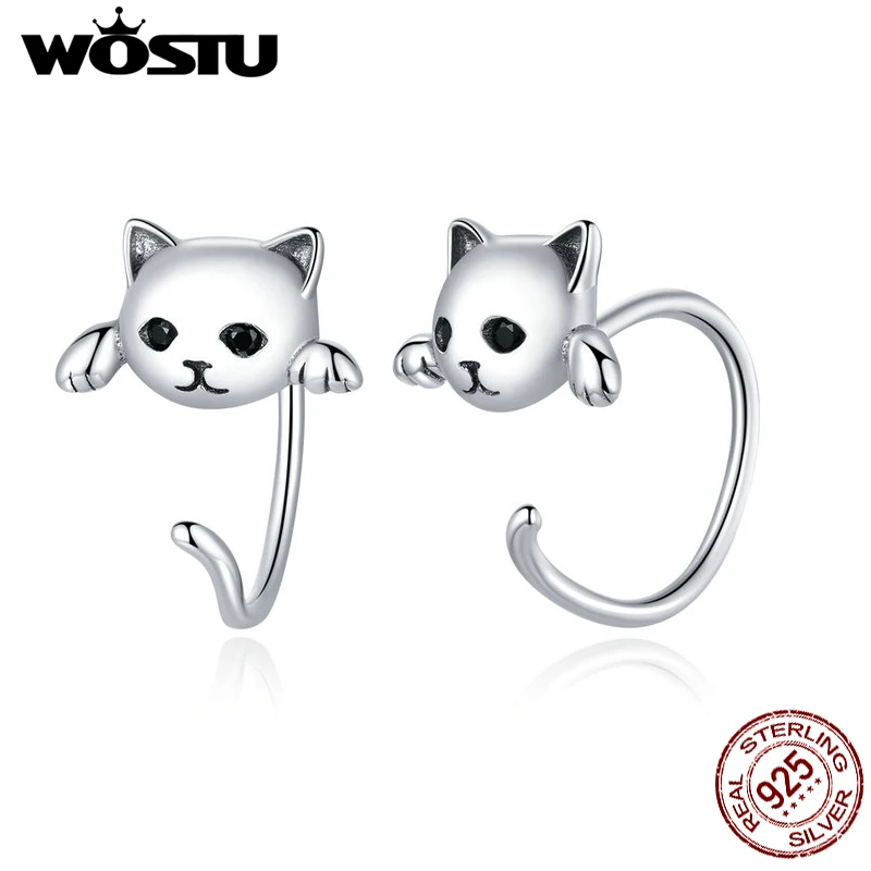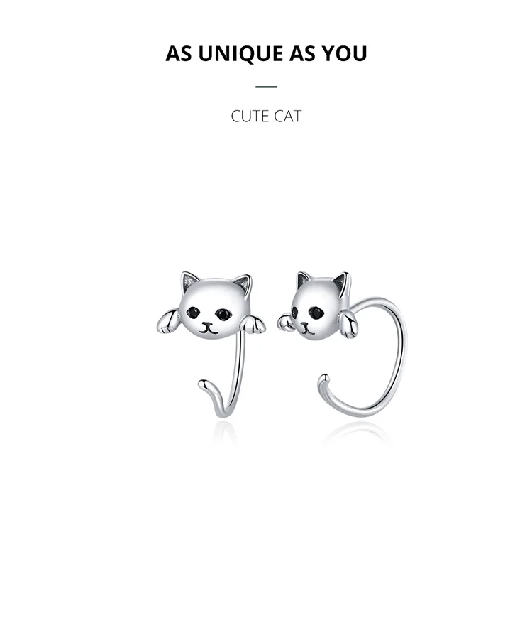 Женские серьги-гвоздики из серебра 925 пробы, в виде кота
