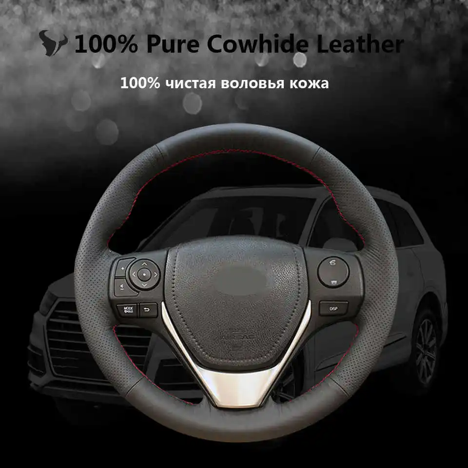 Черный чехол на руль из натуральной кожи для Toyota RAV4 2013-2018 Toyota Corolla 2014-2017 Auris 2013 2014 2015 2016