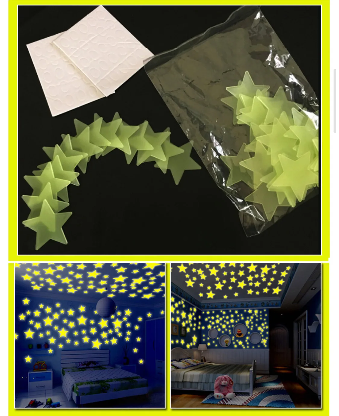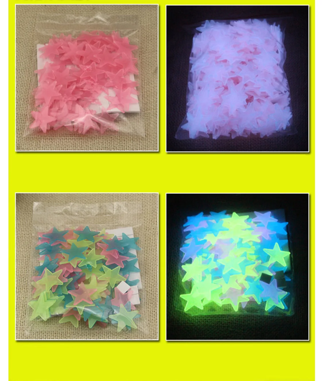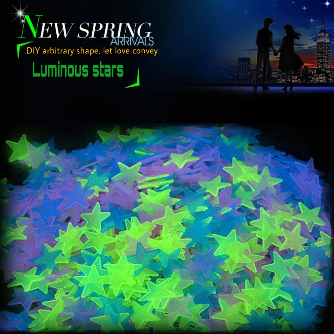 3D наклейки со звездами, светящиеся в темноте, флуоресцентная живопись, игрушка для детской комнаты, Потолочный Переключатель, украшение, подарки, 100 шт.