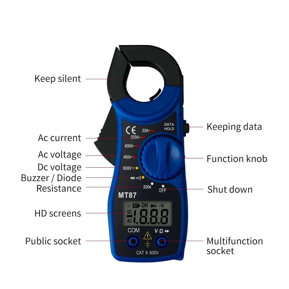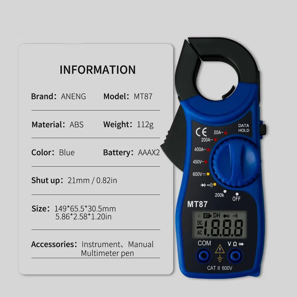 Цифровой мультиметр-зажим Mt87, профессиональный портативный электронный измеритель сопротивления, силы тока и напряжения постоянного и переменного тока
