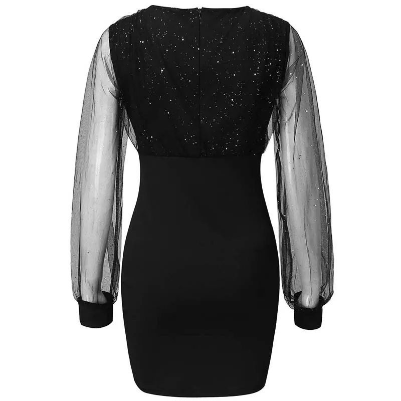 Женское платье с блестками, Сетчатое облегающее мини-платье составн...