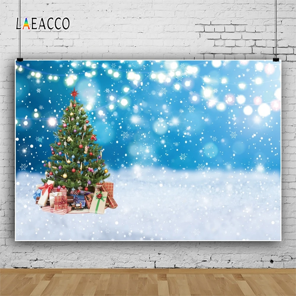 Laeacco Рождественский светильник для фотосъемки Bokeh Снежинка Подарки Дерево снег фон для фотосъемки новогодний фон для фотосъемки
