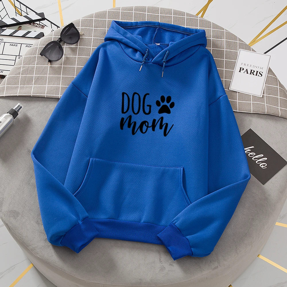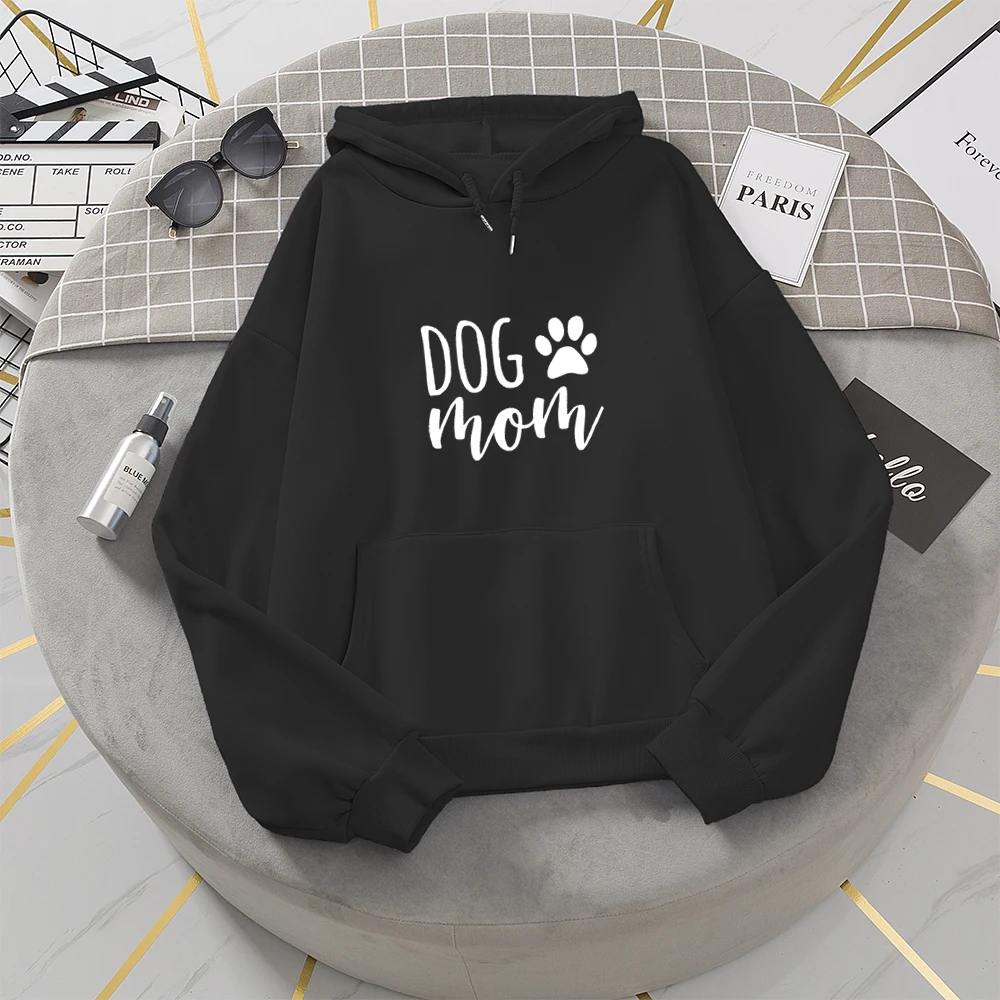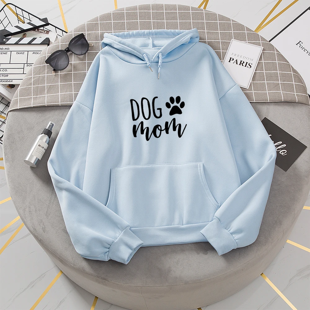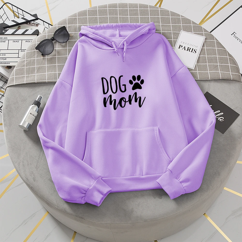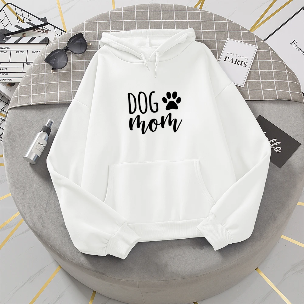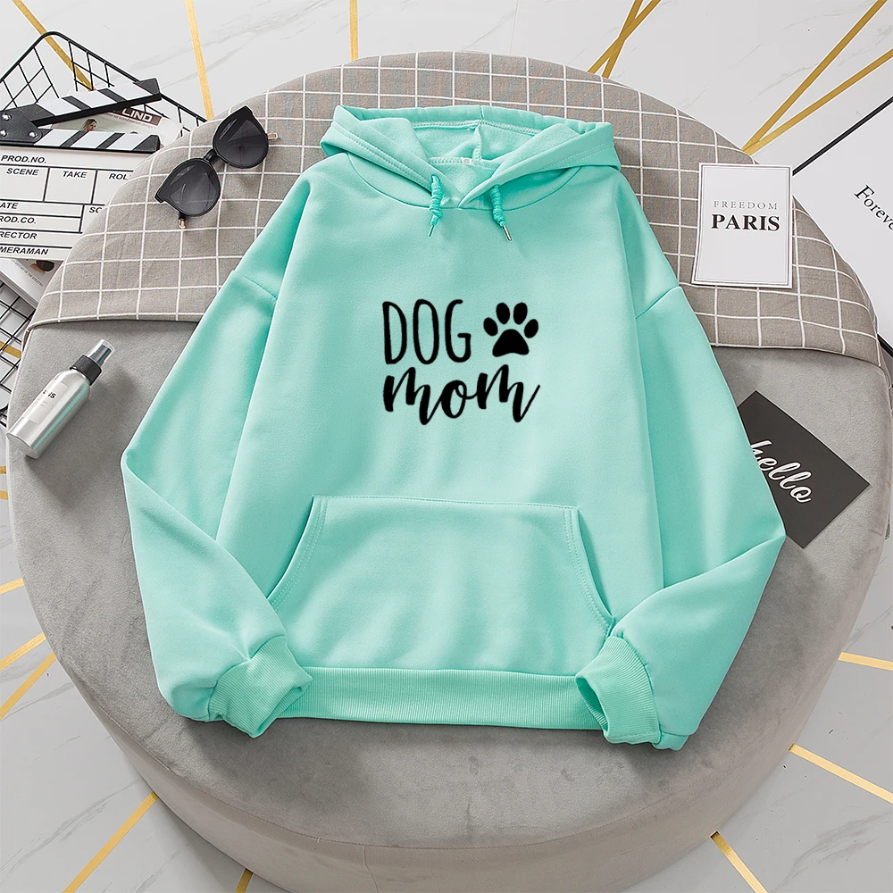 Толстовки с капюшоном и надписью «Dog Mom» Для женщин в Корейском стиле Harajuku Kawaii, графический свитшот, женская теплая толстовка большого размера, пуловер, уличная одежда