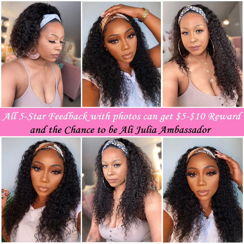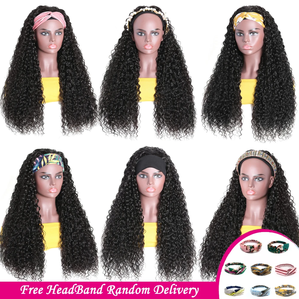 Перуанские кудрявые парик с головной повязкой человеческие волосы 14-26 дюймов, манекен для шарфа парика натуральные волосы без геля, Ali Julia Jerry, вьющиеся волосы, парик с повязкой на голову без клея