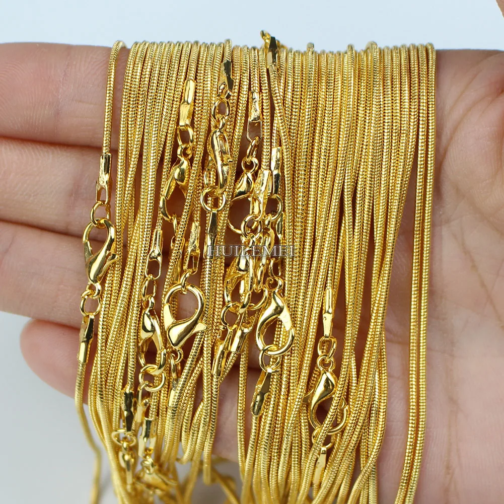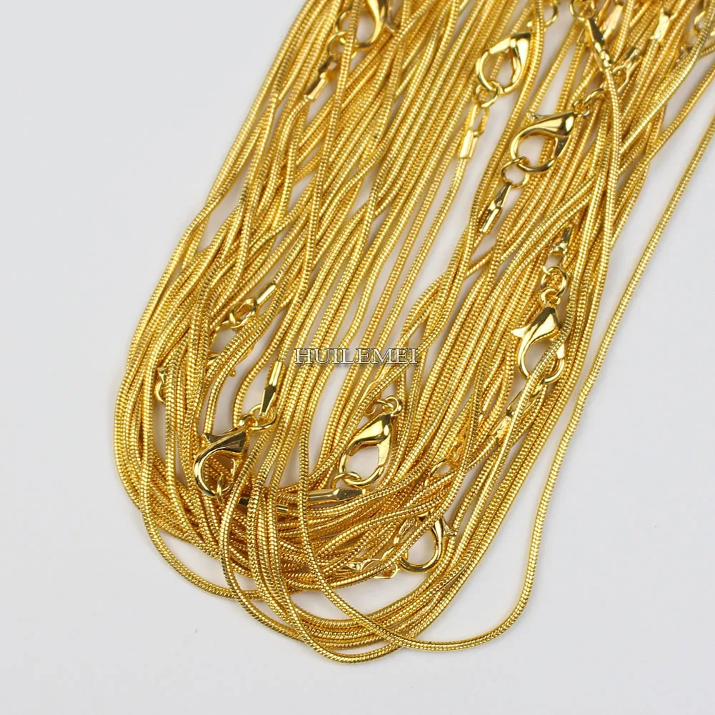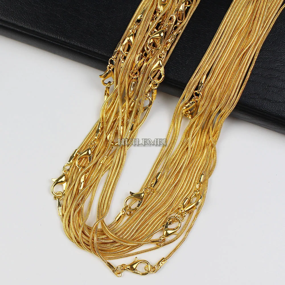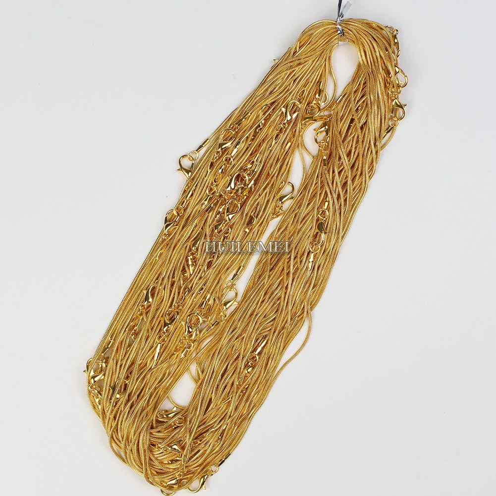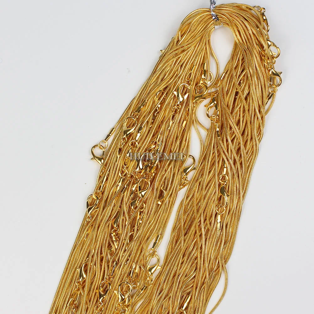 10 шт.лот 1,2 мм золотистого цвета змеиная цепочка ожерелья для женщин 16 "18" 20 "24" модное ювелирное ожерелье цепи
