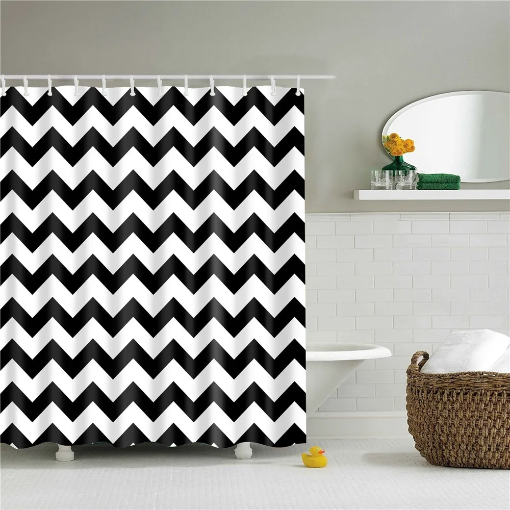 Занавеска для душа из полиэстера, водонепроницаемая, черно-белая