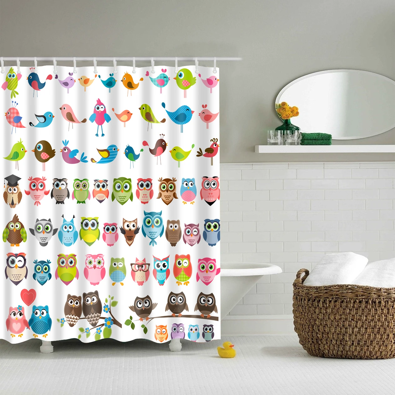 Занавеска для душа из полиэстера, водонепроницаемая, с милыми живот...