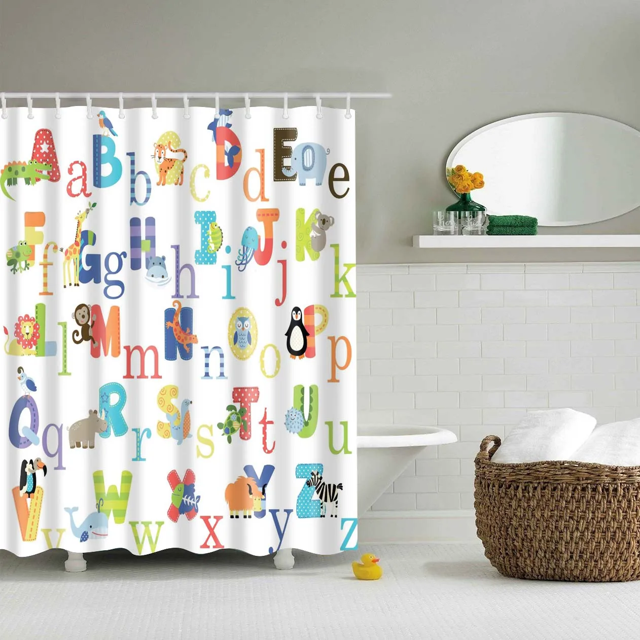 Забавная занавеска для душа для детей, водонепроницаемая тканевая з...