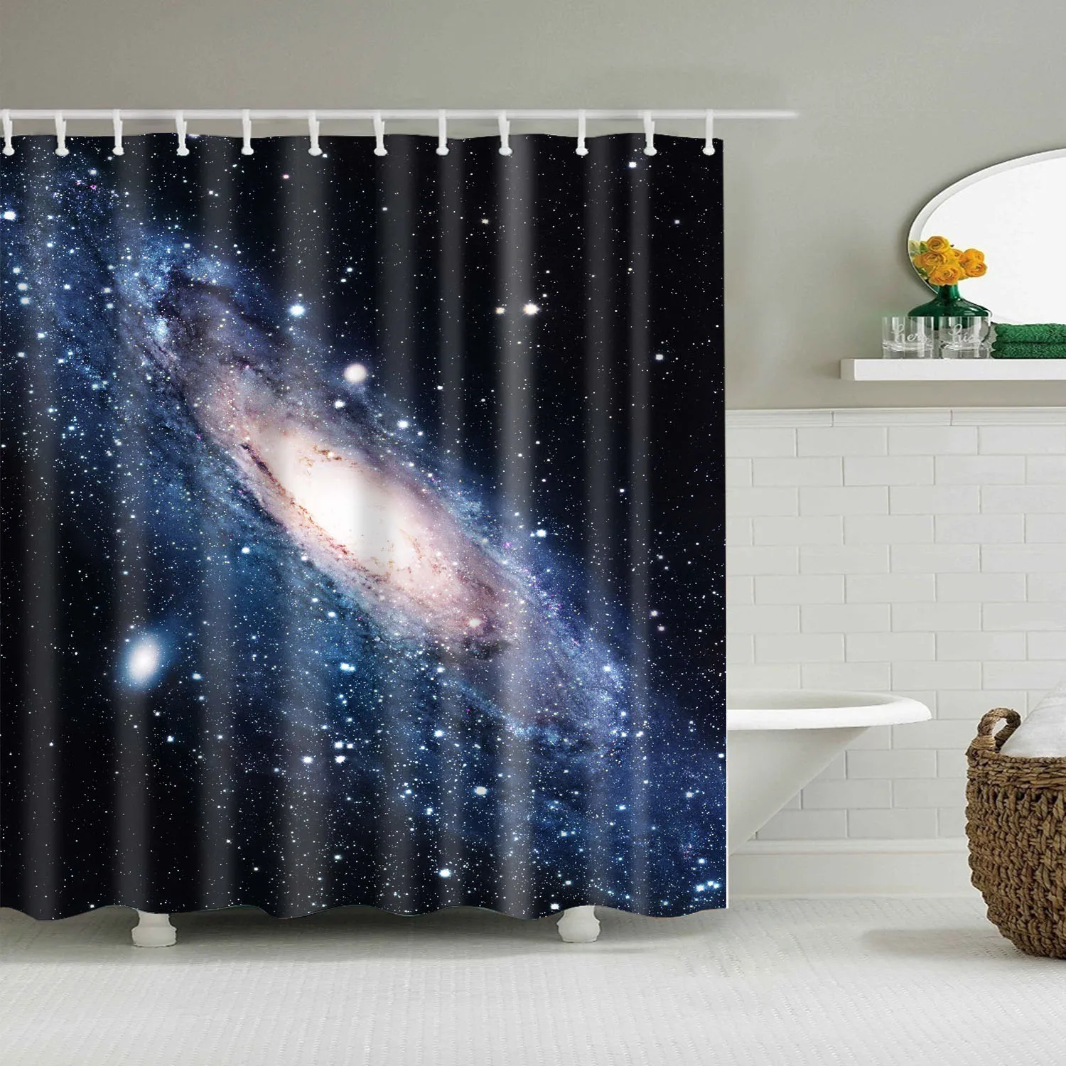 Занавеска для душа из полиэстера, водонепроницаемая, с крючками