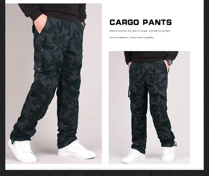 Зимние мужские брюки-карго, двухслойные, на флисе, теплые, камуфляжные, тактические, хлопковые, длинные, мешковатые, повседневные штаны