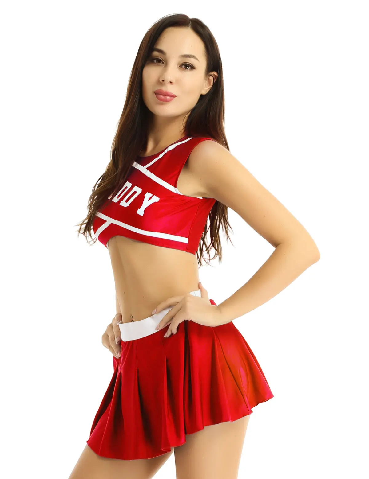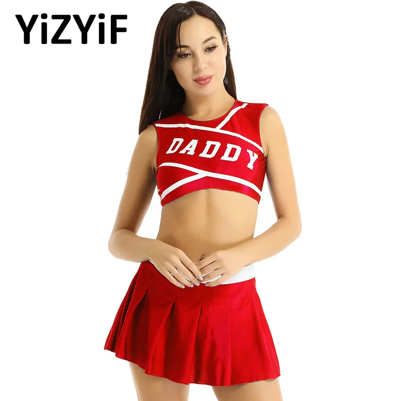 Особенности:Женский очаровательный костюм болельщика для костюмированной вечеринкиУкороченный топ без рукавов с круглым вырезом и надписью «DADDY» спереди; Эластичная плиссированная мини-юбка.Хорошая эластичная ткань, мягкая и удобная в носке, отлично подчеркивает ваши вечерние и спортивные мероприятия.Хороший выбор для нарядов, ролевых игр, сценических костюмов, карнавала, танцев, соревнований по танцам и т. д.Для получения подробной информации о размерах обратитесь к описанию товара. Ручная стирка в холодной воде.