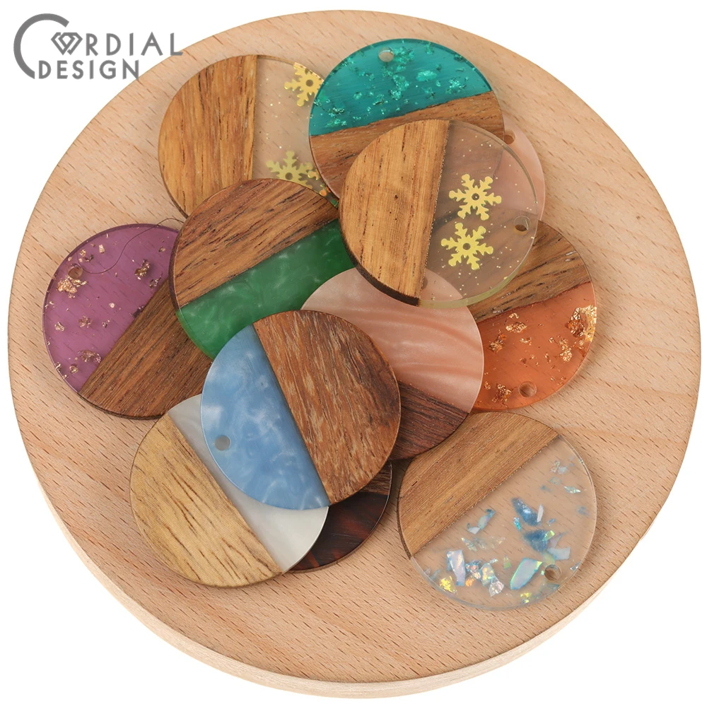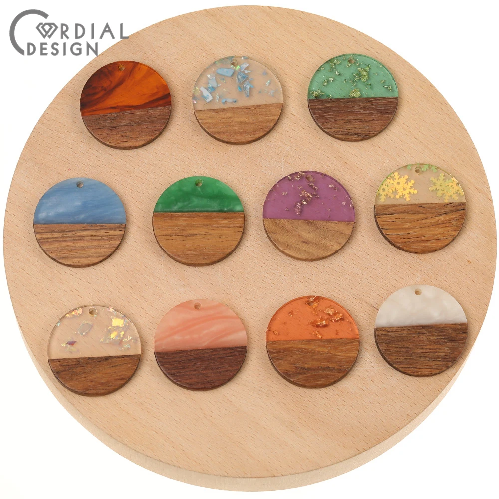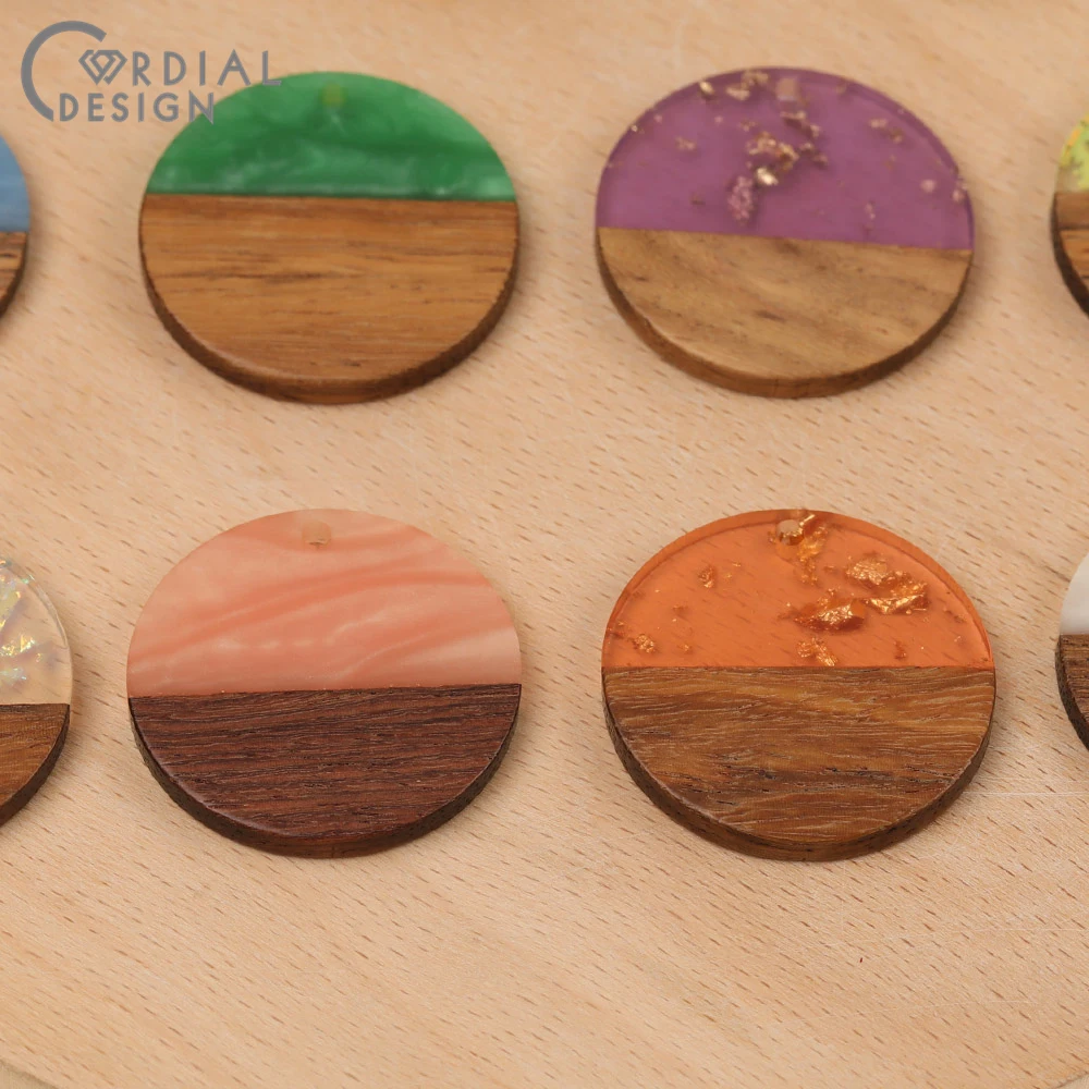 Сердечный Дизайн 50 шт 28*28 мм Серьги Аксессуарыкруглая форманатуральное дерево и смолаподвескиСделай самювелирные изделия и компоненты