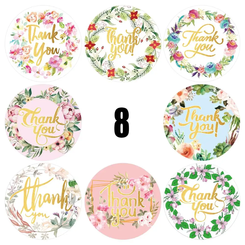 Наклейки с цветами, 1 дюйм, 500, этикетки для печати, 8 видов конструкций шт.рулон