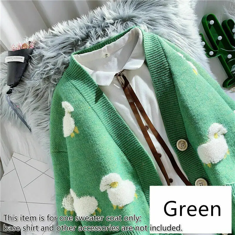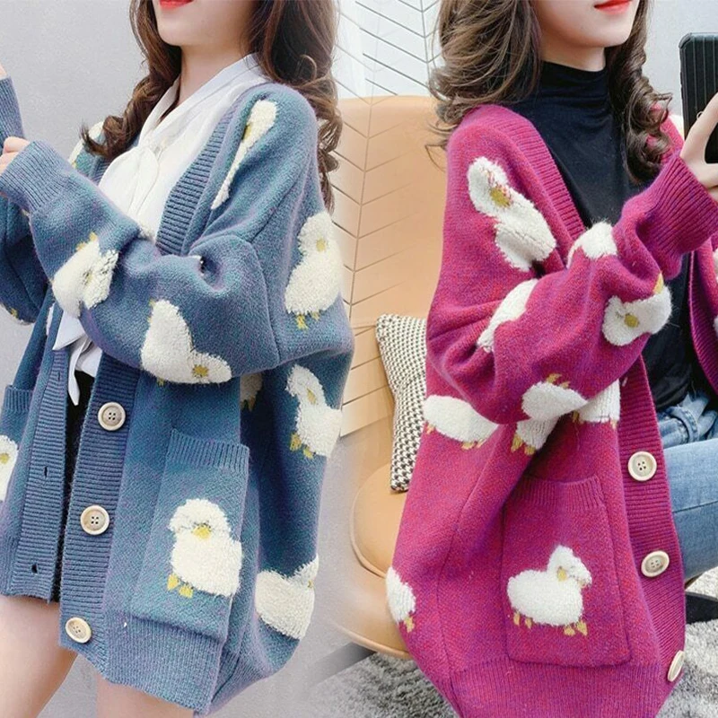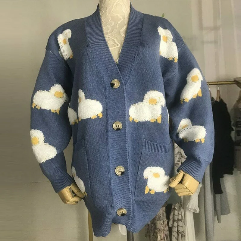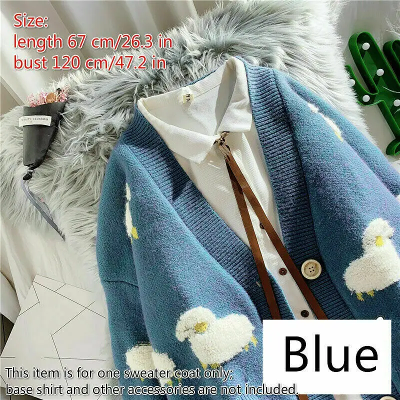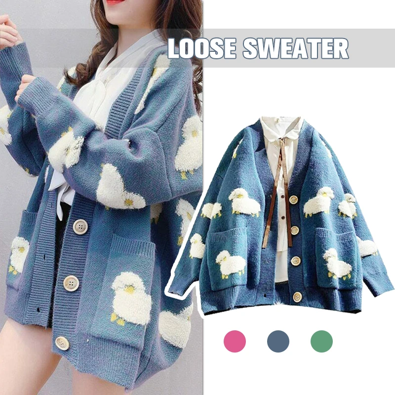 Женский осенний кардиган на весну и зиму, вязанные топы, женский свободный свитер, пальто с милым рисунком овечки, милая куртка с v-образным вырезом