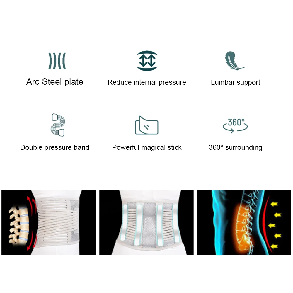 1. Наш продукт представляет собой светильник, тонкий и дышащий поясной защитный ремень, который специально разработан для поясничных проблем для эффективной защиты поясницы.2. Наша поясничная защита имеет хороший эффект при обработке грыжи поясничного диска, растяжения поясничных мышц, боли в талии, дегенерации поясницы, синдрома поясницы и спортивных травм.3,4 поддерживающие стальные пластины и двойные ремни давления помогают поясничному отдела позвоночника вернуться к нормальной кривизне, облегчают поясничное сжатие и избегают вторичных травм.4. Поддержка хряща в обеих сторонах является гибкой, что может эффективно предотвратить проскальзывание поясницы.5. Эргономичный дизайн 26 ° дуговая стальная пластина подходит для нормальной поясничной кривой и уменьшает внутреннее давление.6. Большая сетчатая дышащая ткань, дышащая и приятная для кожи, удобная в использовании, не теряет талии.7. Эта защита талии подходит для всех групп людей в разных случаях, таких как сидение, лежа, стоя, занятия спортом, ходьба, изгиб и т. д.