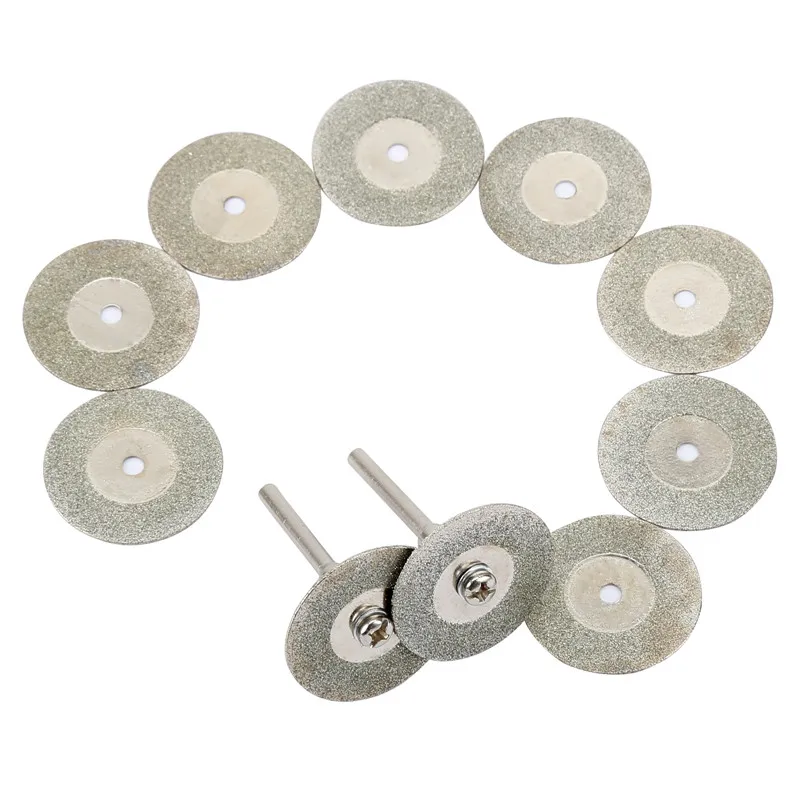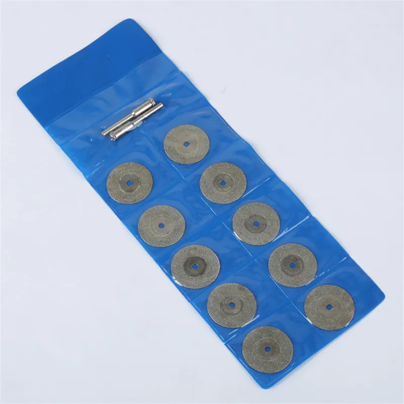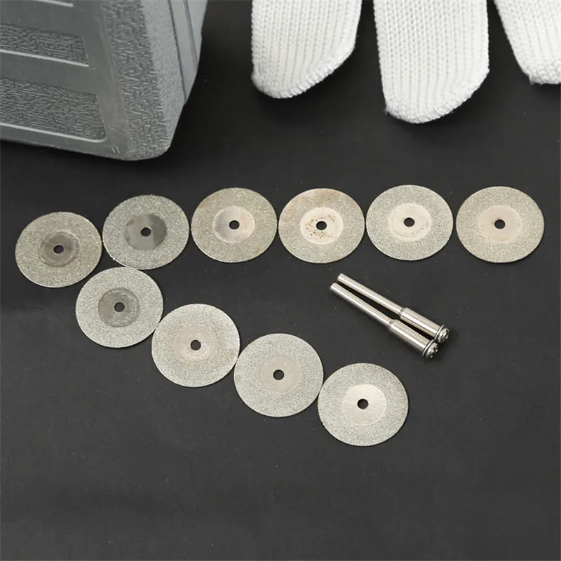 10 шт.компл. роторные алмазные режущие диски + 2 Arbor вала Dremel дрели Инструмент 25 мм диаметр острый режущий камень камни роторные Ремесло Металл