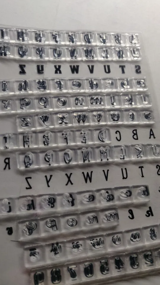 Каждая из букв соединена с одной печатью (i.e. Все три, как один штамп, все три Bs-это один штамп и т. д.), что разочаровывает. Мне придется разрезать их, чтобы отделить.