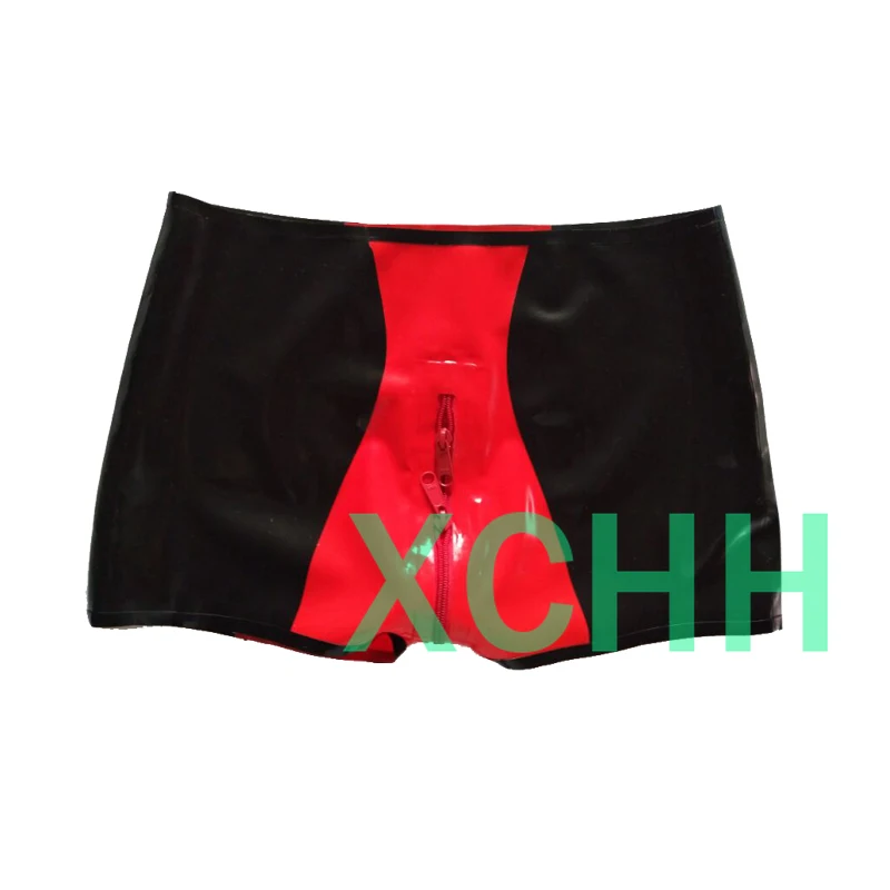 Сексуальное женское черное с красным латексное нижнее белье-шорты экзотическое резиновое нижнее белье с высокой талией, трусики с молнией на промежности