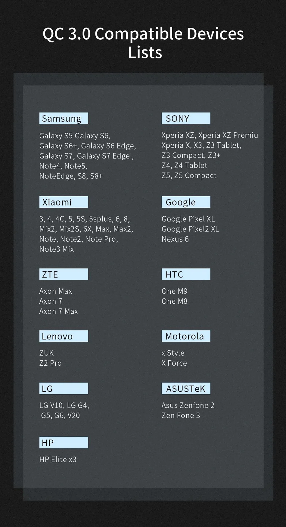 Применяемые протоколы быстрой зарядкиУстройство, док-станция Qualcomm Quick Charge