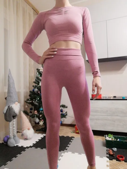 Вообще огонь. Не ожидала, заказала по приколу) единственное вот эта кофта она мне маленькая, ну у меня и плечи широкие. Но не знаю как можно заниматься в прикрытой одежде, жарко же. Ну и пояс на штанах немного высокий. А так вообще огонь. Мои параметры : 78/63/93