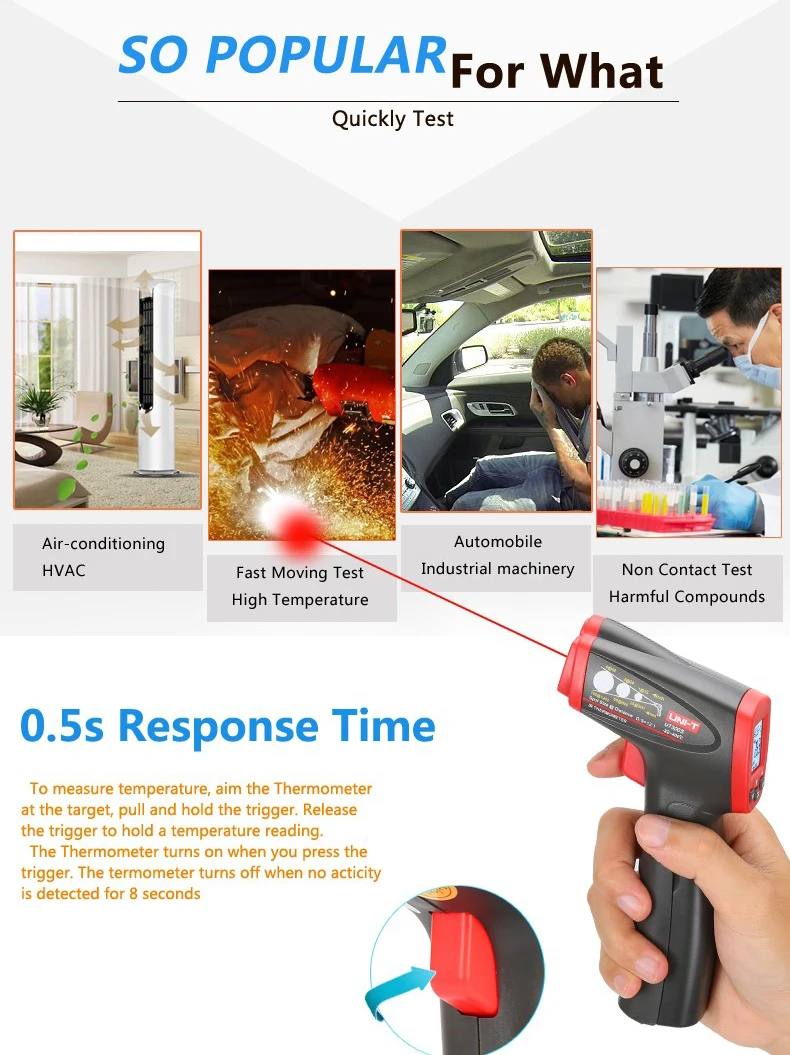 Бесконтактный цифровой инфракрасный термометр UT300S с сканером температуры, лазерный ручной пистолет для измерения температуры