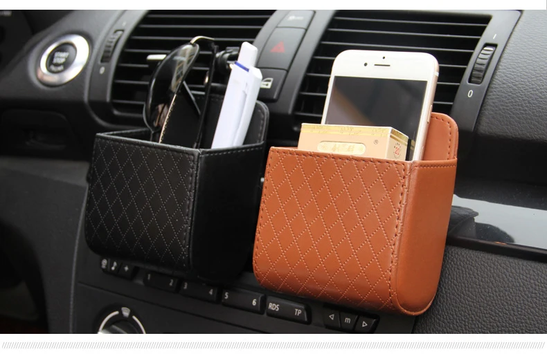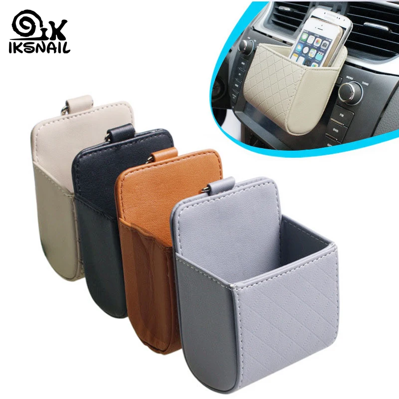 IKSNAIL автомобильная сумка для хранения вентиляционных отверстий, автоматический органайзер для кондиционера, кожаный Органайзер, ящик для хранения всякой всячины для Мобильный телефон ключей, салфетки, очки