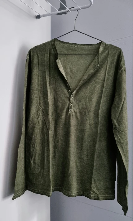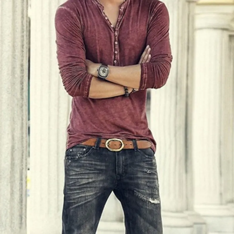 Мужская футболка с V-образным вырезом, длинным рукавом и пуговицами