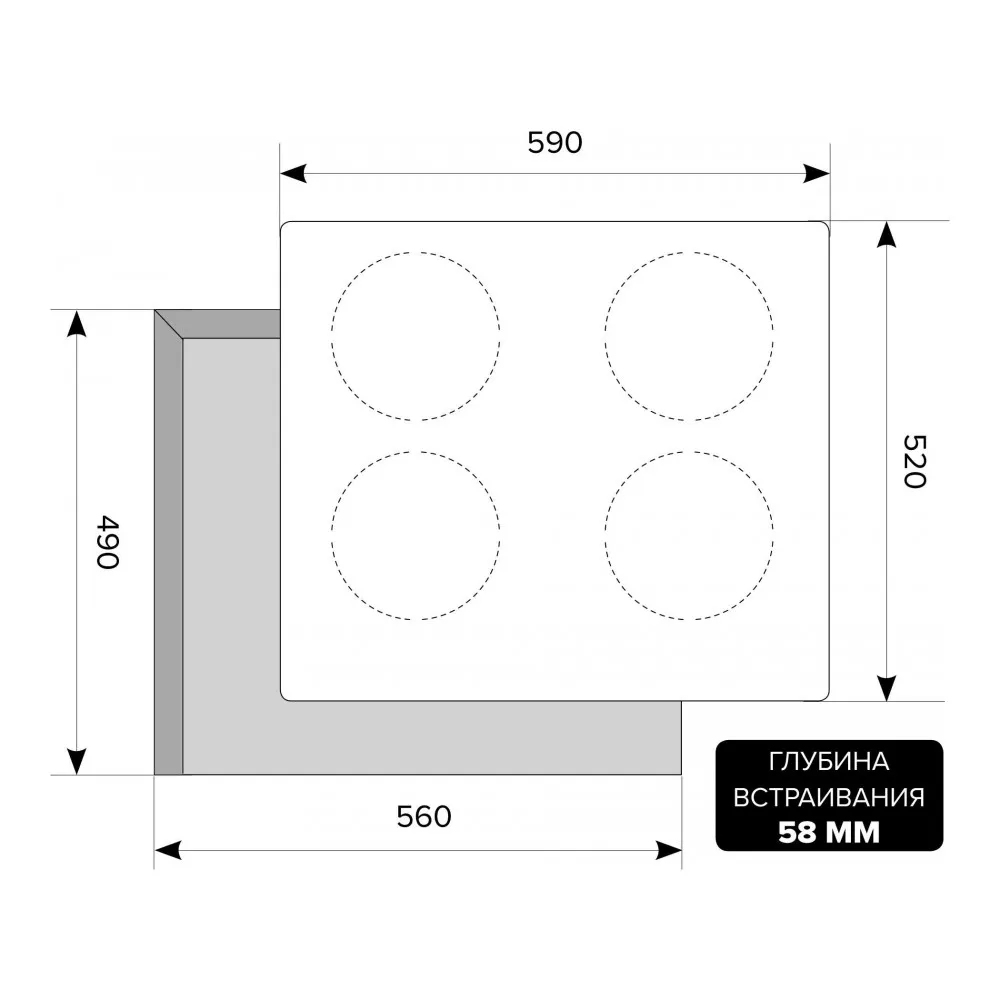 Панель конфорок стеклокерамика Индикация остаточного тепла да Автоматика закипания нет Конфорок индукционных 4 Глубина варочной поверхности 52 см Таймер да Высота варочной поверхности 6 см Всего конфорок 4 Ширина варочной поверхности 59 см Цвет панели конфорок черный Дизайн Домино нет Страна производитель Китай Размер ниши для встраивания (ШхГ) 56х49 см Переключатели сенсорныеВНЕШНИЙ ВИД ТОВАРА
