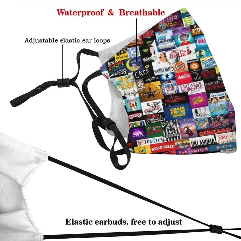 Коллаж с логотипом Бродвея для взрослых и детей, моющаяся смешная маска для лица с фильтром, мелодия на Бродвее, музыкальный шоу, театральный театр
