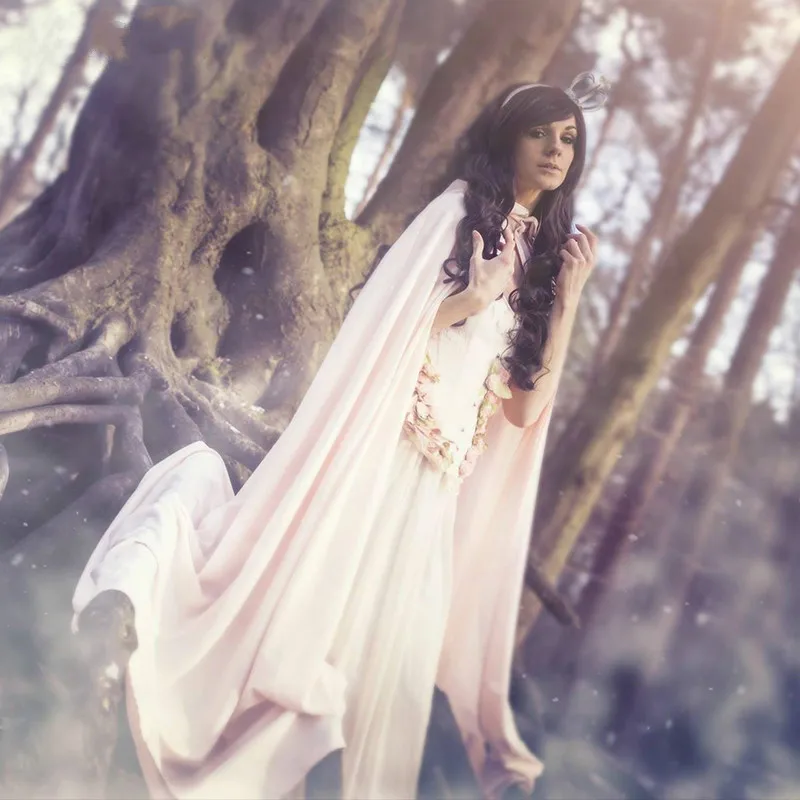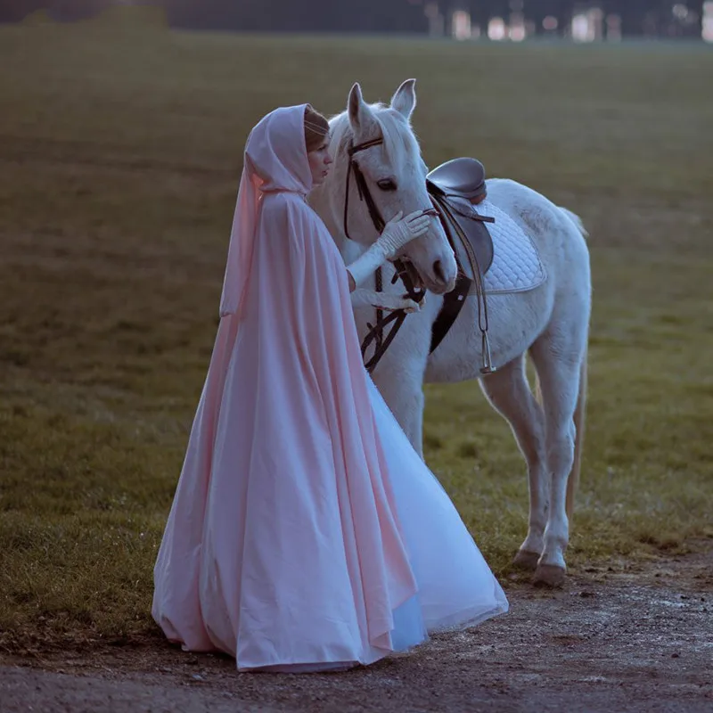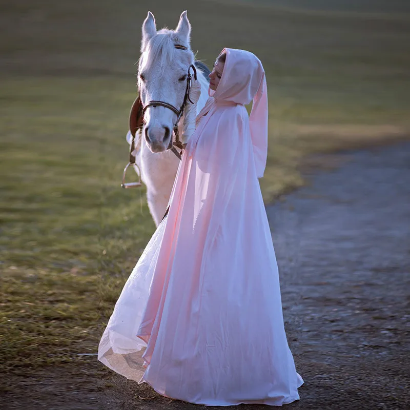 Mingli Tengda розовый шифон Золушка средневековый плащ Свадебная накидка зимняя Свадебная сказка Ренессанс накидка с капюшоном