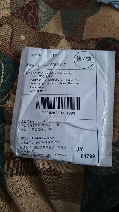 Страна: RU Доставка: Cainiao Super Economy 17.01.2021