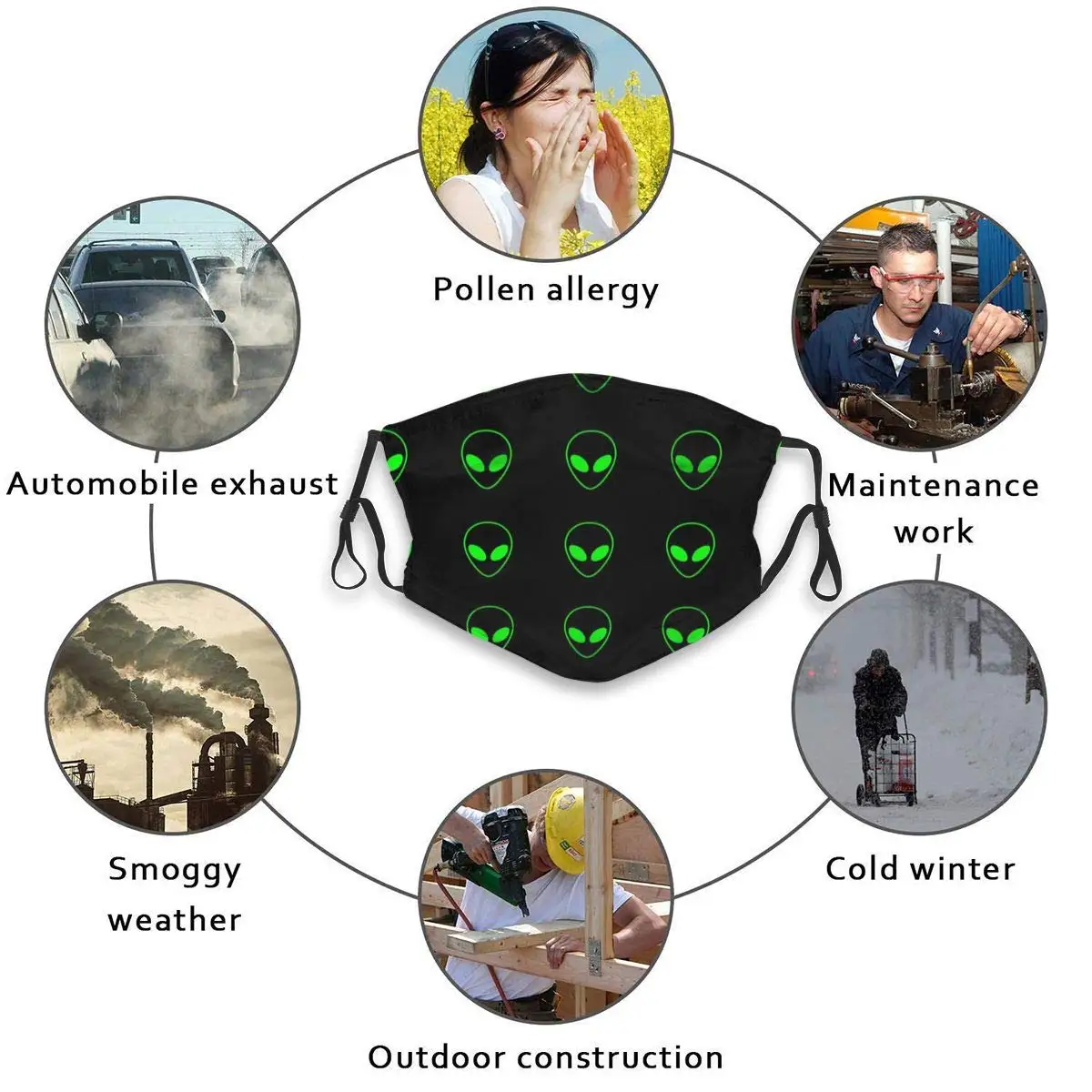 Черные пылезащитные маски Alien Avatar с рисунком, модная защитная маска для лица, многоразовые повседневные маски для рта с двумя сменными фильтрами PM2.5