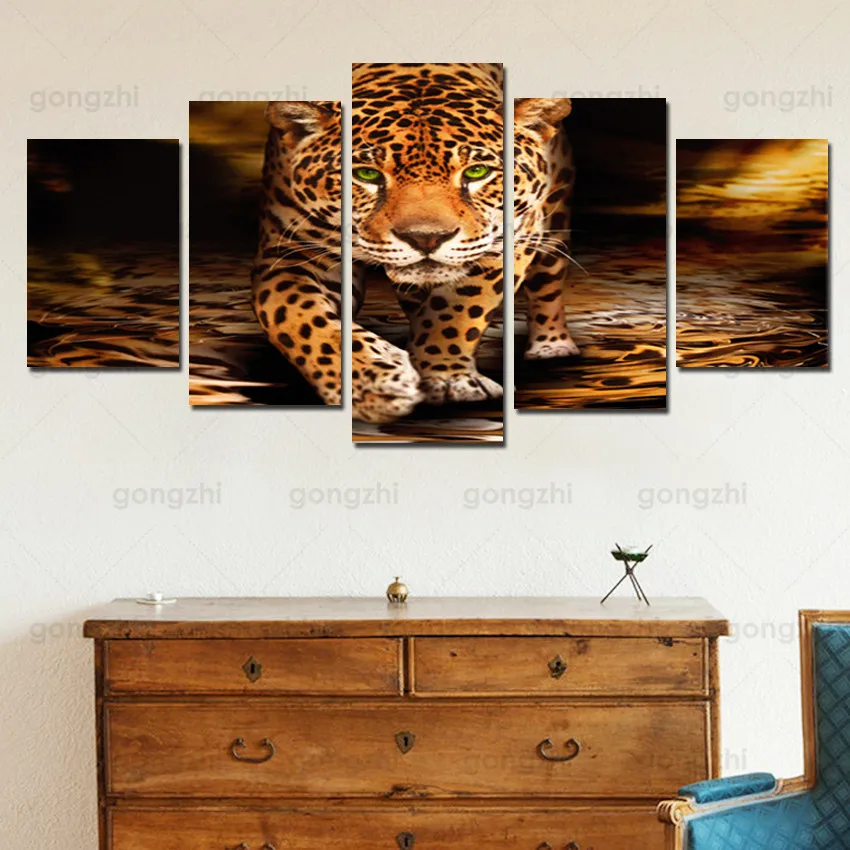 Картина на холсте с изображением животных, современный модульный настенный постер с леопардовым принтом диких животных, украшение для дома, гостиной, пять шт.