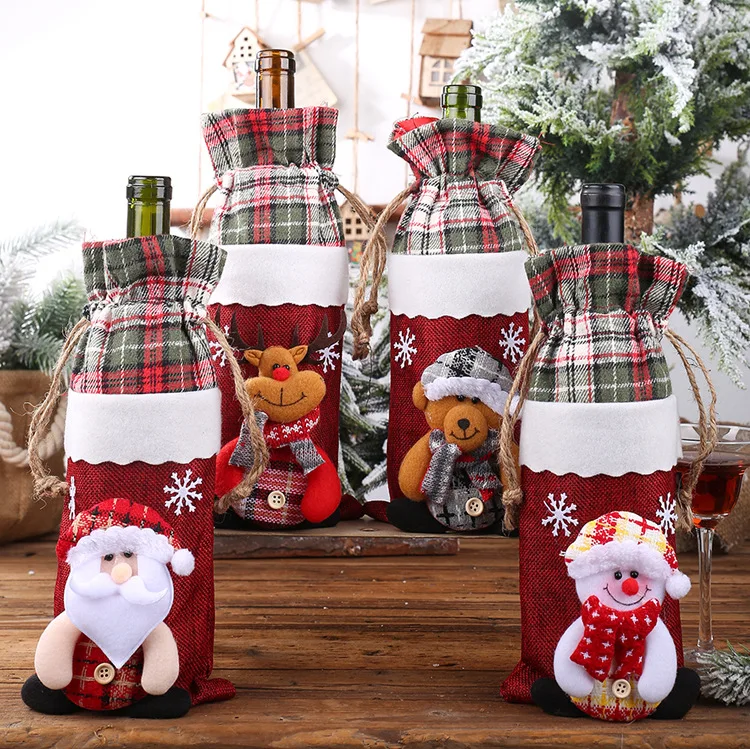 Рождественская Крышка для бутылки вина рождественские украшения для дома 2020 Натал Ноэль Рождественское украшение стола Рождественский подарок с новым годом 2021