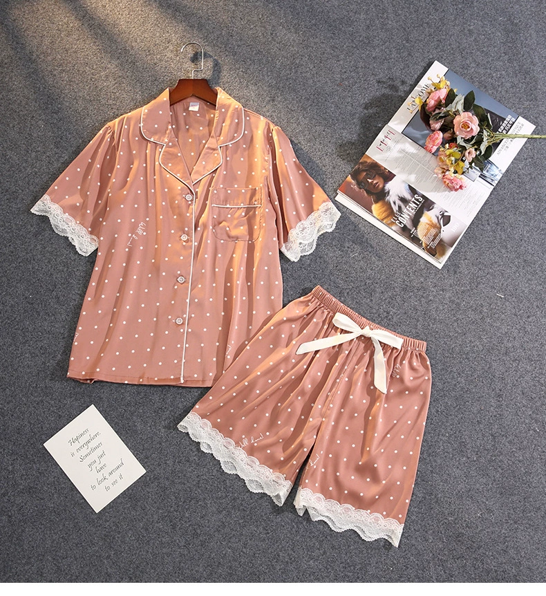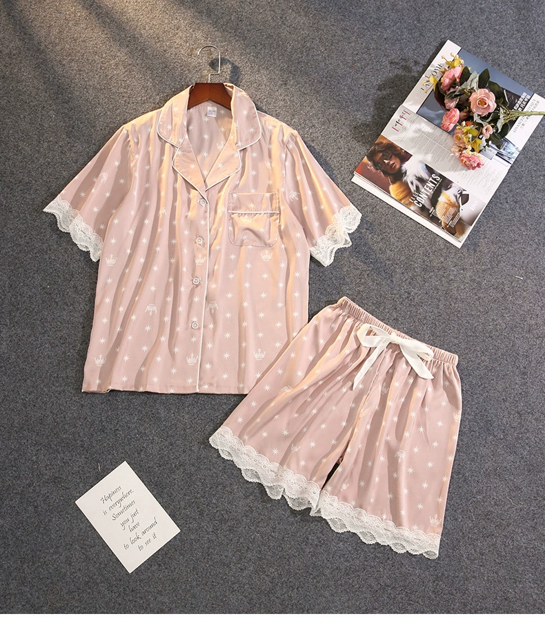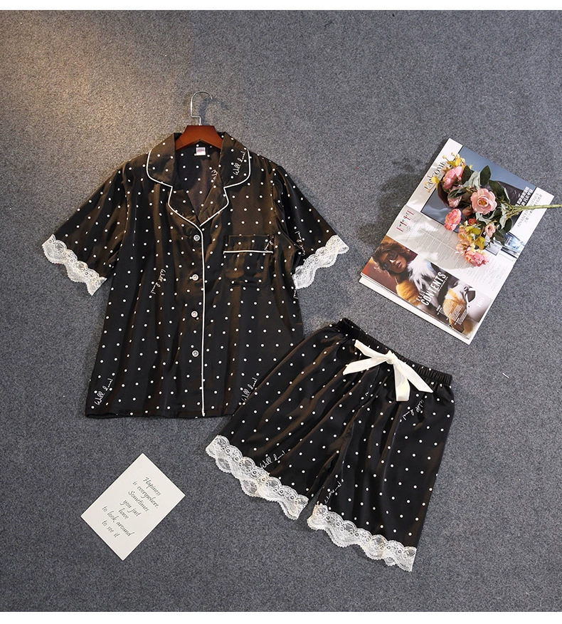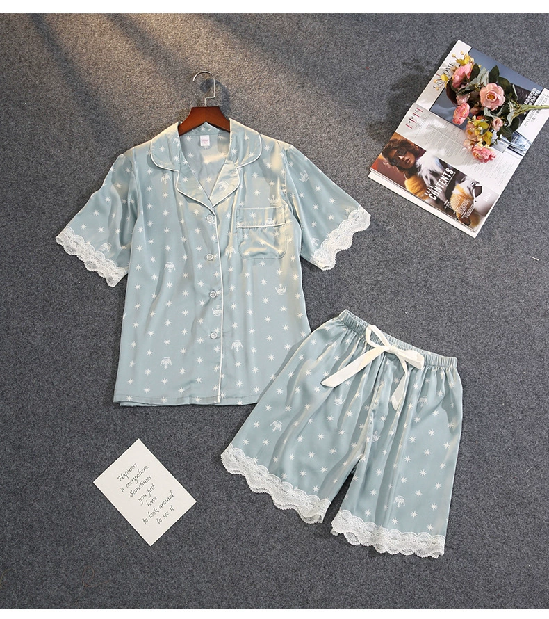 Комплект пижамный женский кружевной из 2 предметов, одежда для сна, атласная Шелковая пижама с коротким рукавом, комплект из футболки и шорт, домашняя одежда