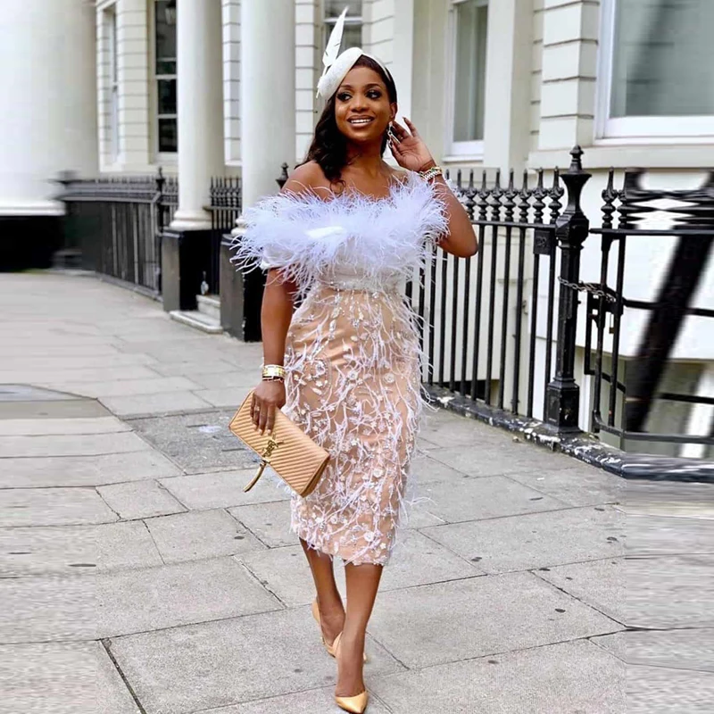 Женское вечернее платье со спущенными плечами, кружевное платье с аппликацией и перьями, вечернее платье для выпускного вечера