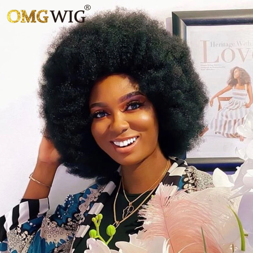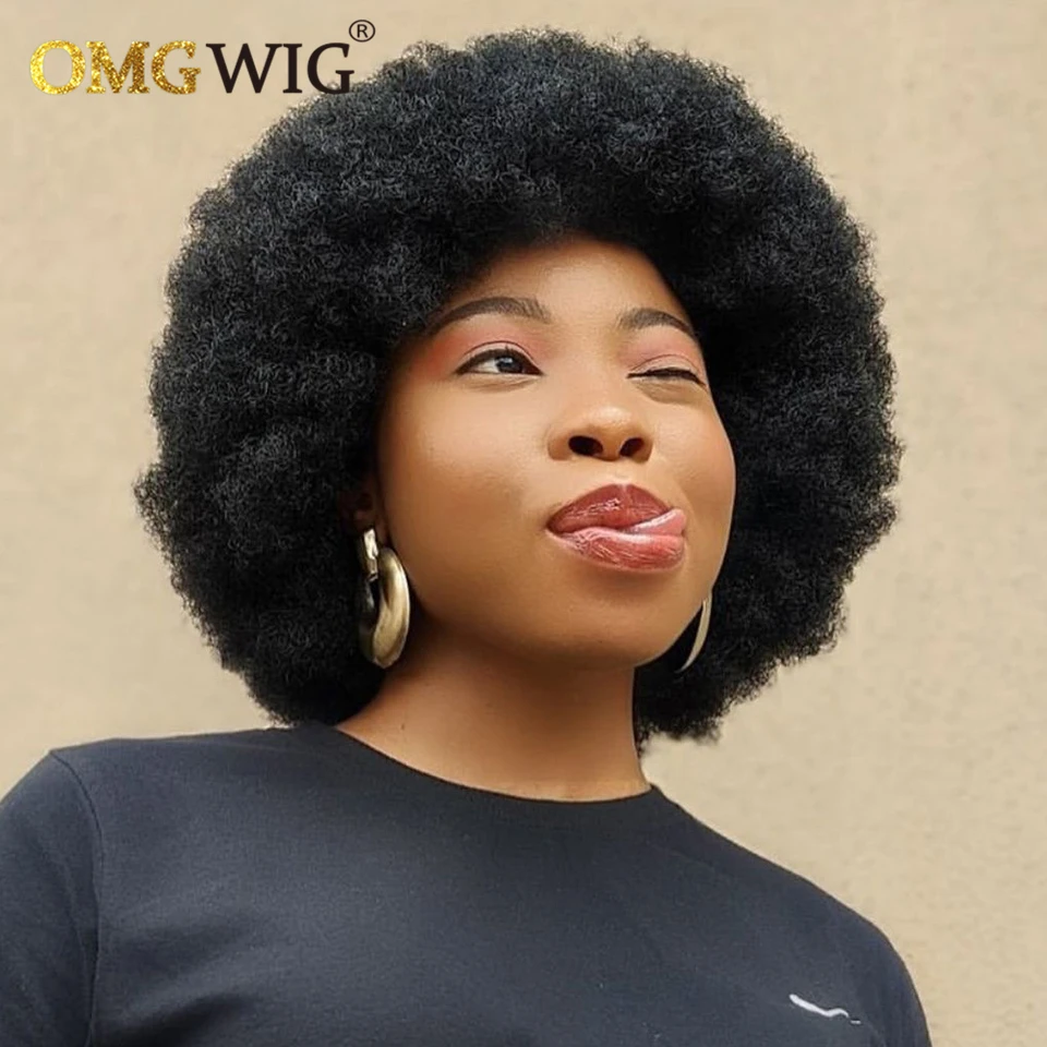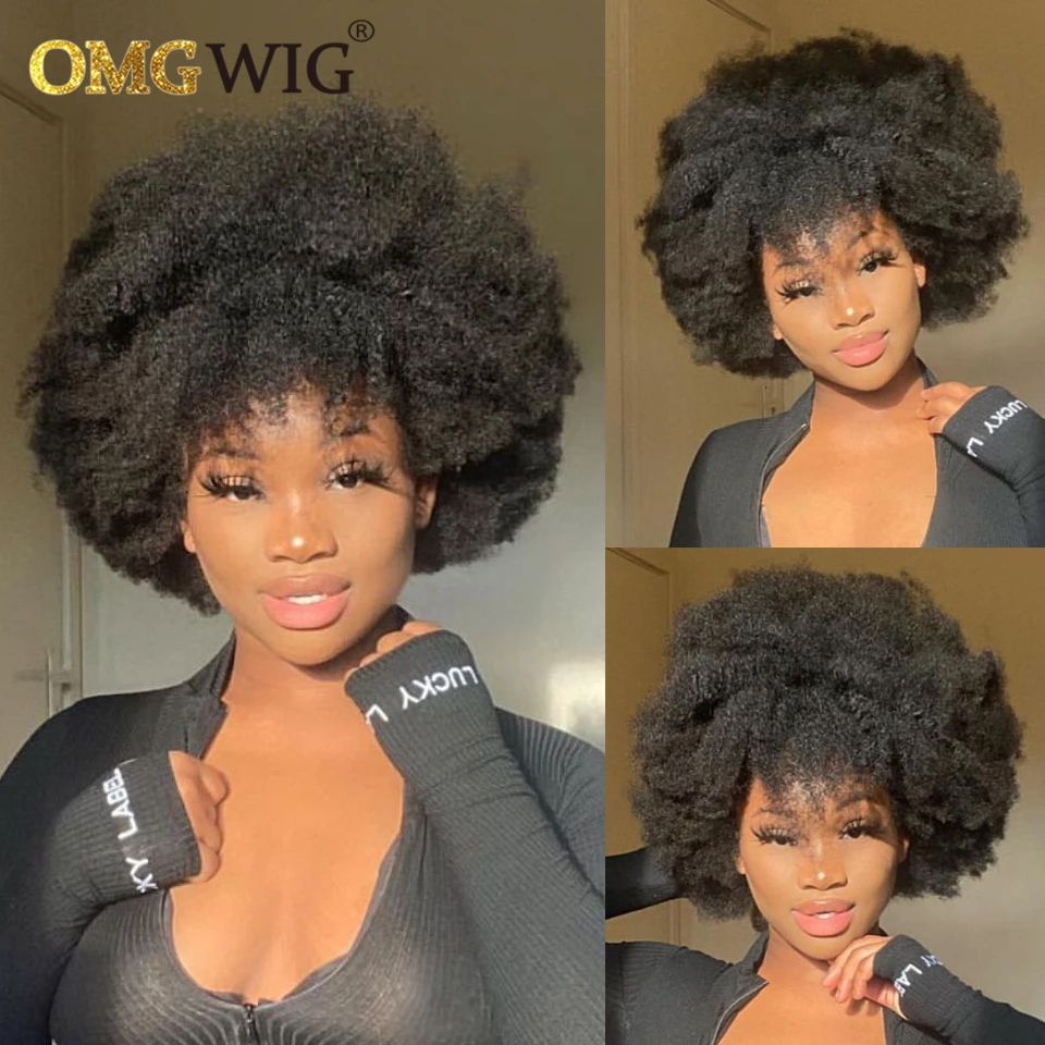 Плотные афро кудрявые короткие стрижки Боба Пикси тупые не машинные OMG кружевные парики с челкой для черных женщин дешевый парик из натуральных волос
