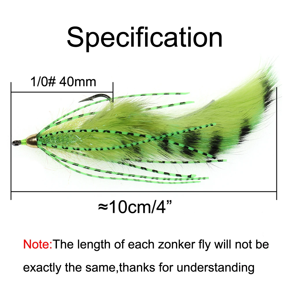 Bimoo 6 шт. #10 латунная головная зонкер муха Оранжевый Белый Желтый Стример Летать Приманка для форели бас Щука рыбалка